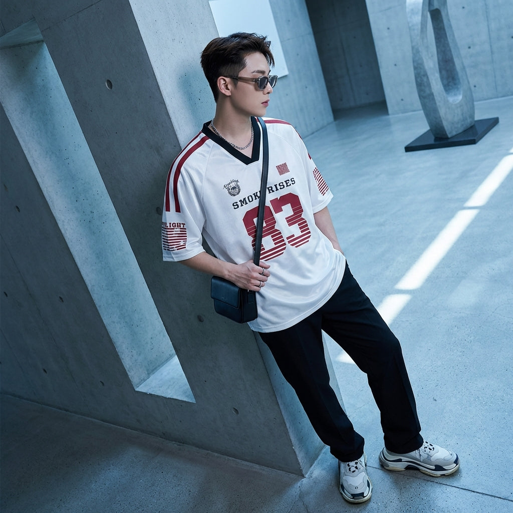 Adopta un look casual y moderno con nuestra camiseta de cuello en V y manga corta, ideal para los días de verano. Su diseño holgado y su estampado moderno la convierten en un imprescindible para un estilo streetwear ¡afirmado! ✨