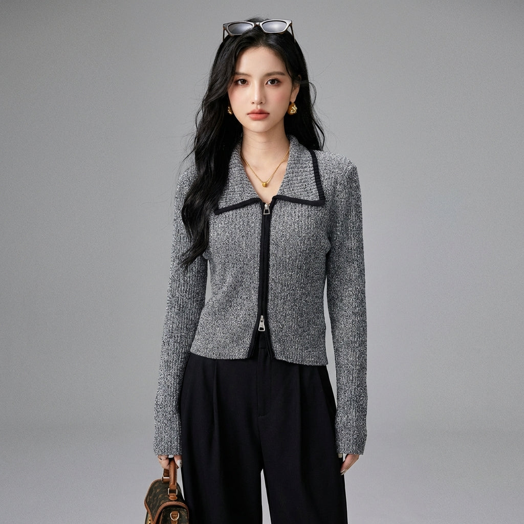 Adopta un look casual y sofisticado con nuestro cárdigan de punto con doble cremallera. Su diseño bicolor negro y gris y su cuello vuelto lo convierten en una prenda de moda y fácil de llevar para cualquier ocasión. ✨