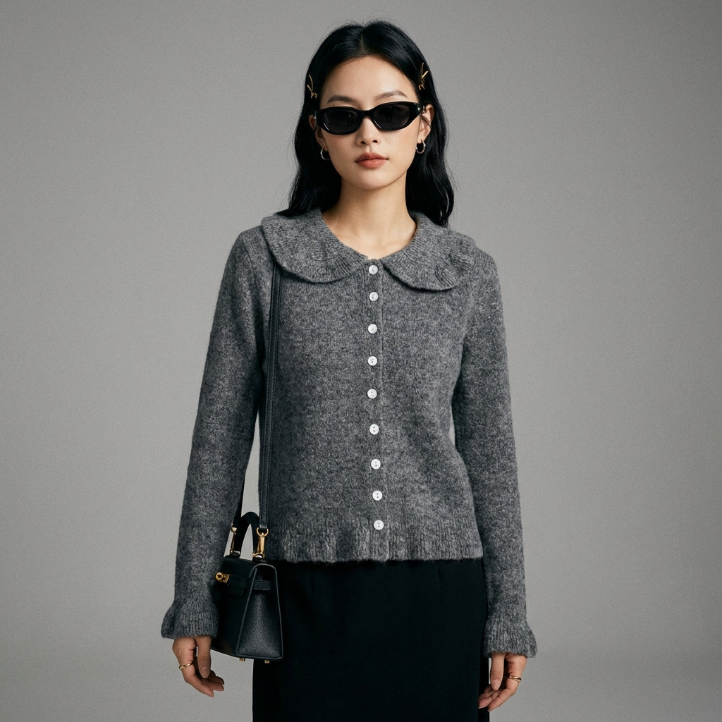 - Tipo: Cárdigan, Cuello Peter Pan, Mangas Largas. Un diseño clásico revisado para una silueta moderna y femenina.