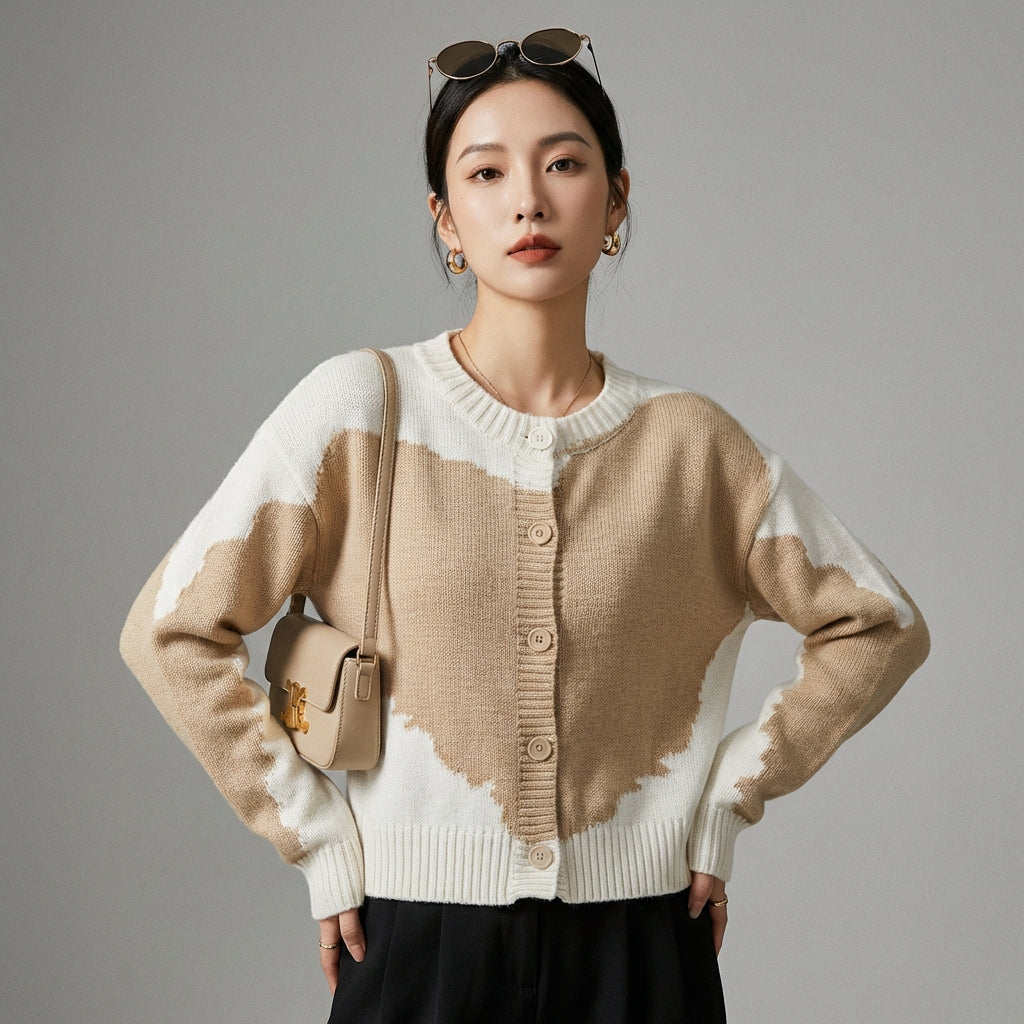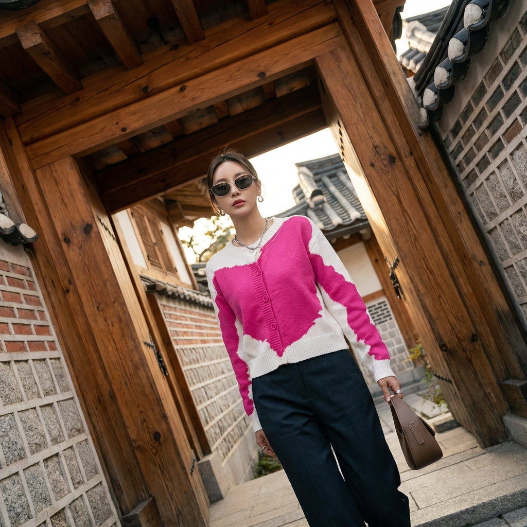 - Estilo: Minimalista, Elegante, Vintage. Este cárdigan encarna la estética depurada y refinada de la moda coreana, perfecto para un look chic y femenino.