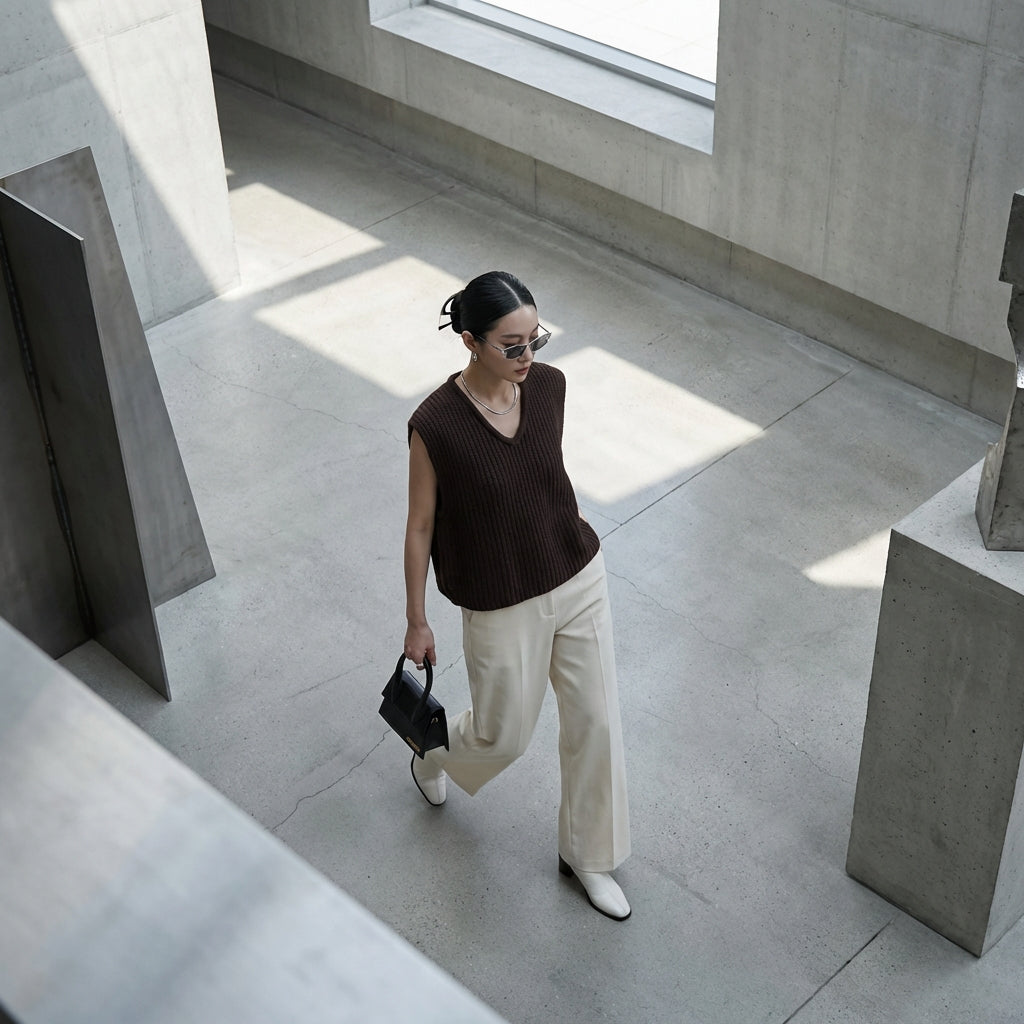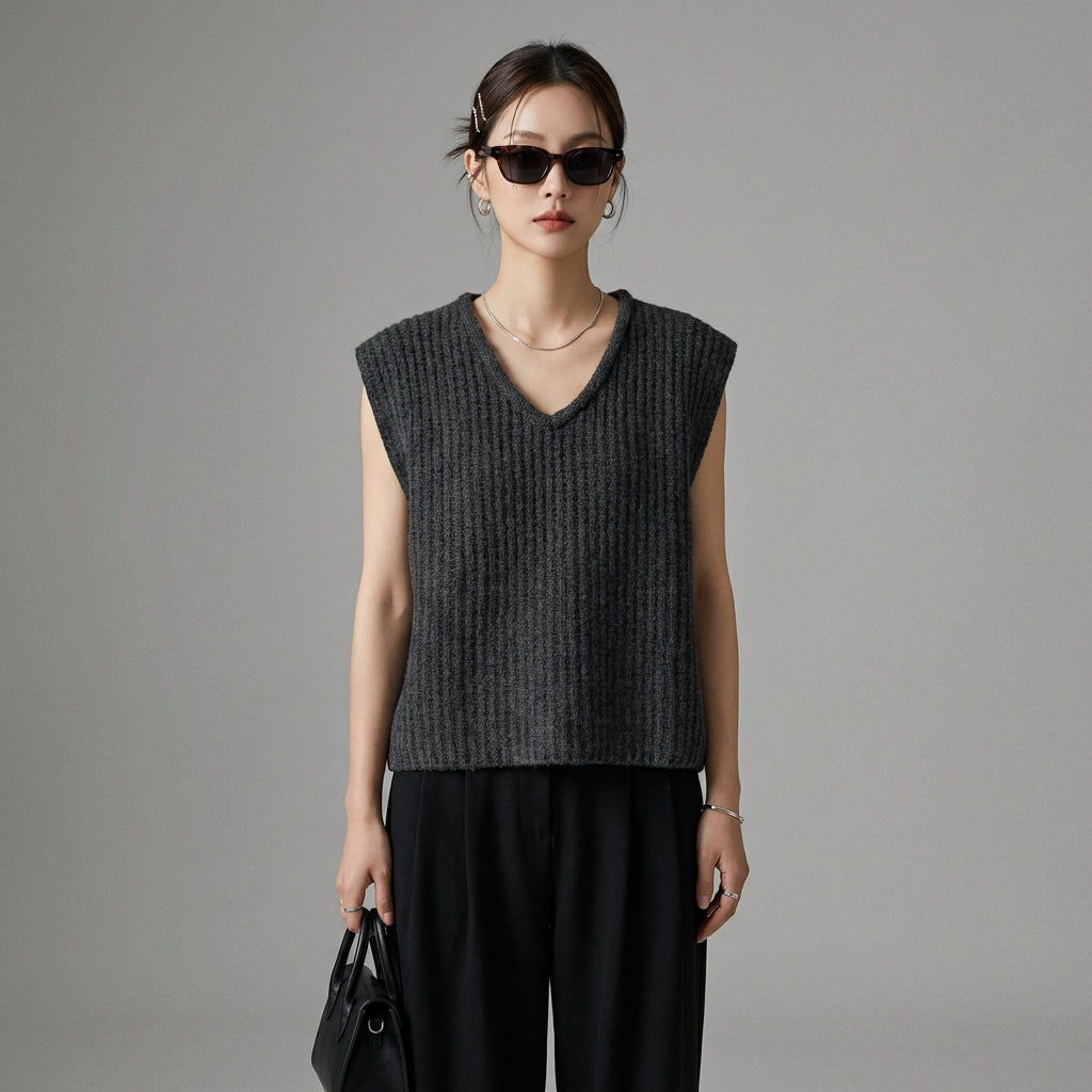 - Estilo: Minimalista, Casual, K-fashion. Este chaleco encarna la elegancia discreta y la versatilidad, perfecto para un estilo coreano moderno y cómodo.