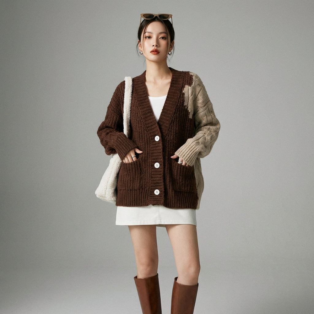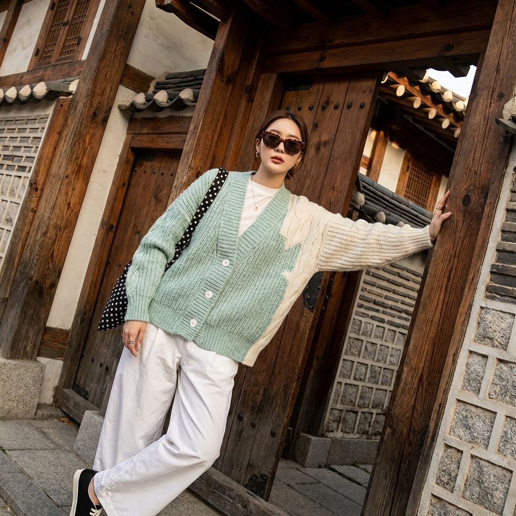 - Estilo: Moda coreana, Casual chic, Tendencia. Este cárdigan encarna la estética relajada y moderna de la K-fashion, fácil de combinar.