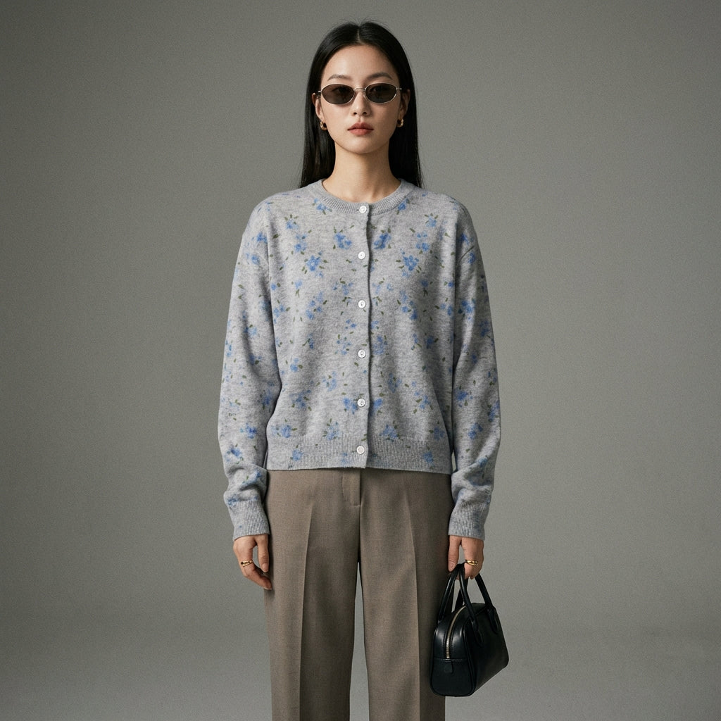 Adopta un look suave y atemporal con nuestro cárdigan de punto con cuello redondo, adornado con delicados motivos florales. Su corte holgado y cómodo lo convierte en un esencial para todas las estaciones, ¡aportando un toque de frescura y elegancia a tu atuendo! 🌸
