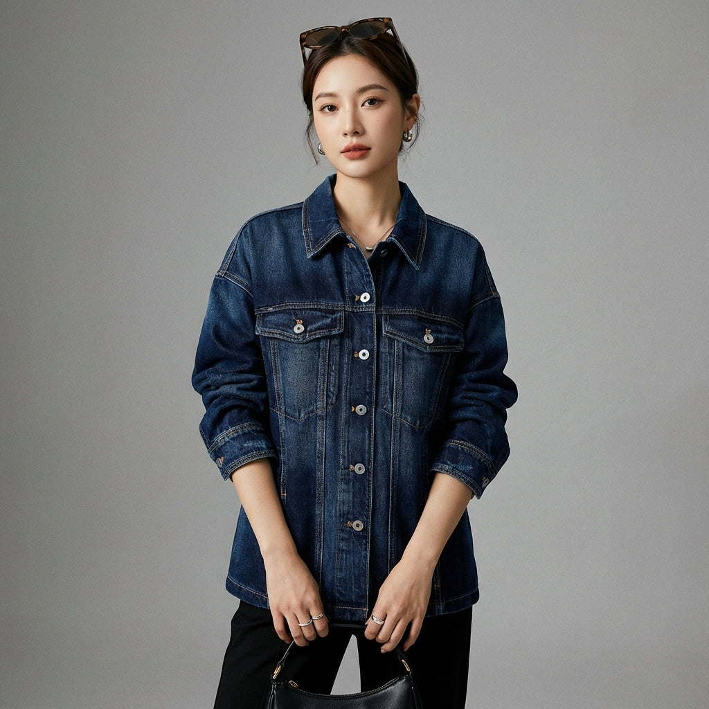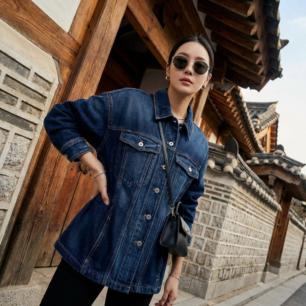 Adopta un look casual y a la moda con nuestra chaqueta camisera vaquera, perfecta para cualquier ocasión. Su estilo oversize y su corte holgado te garantizan comodidad y modernidad. ¡Un imprescindible en el armario de la moda K-fashion! 🌟