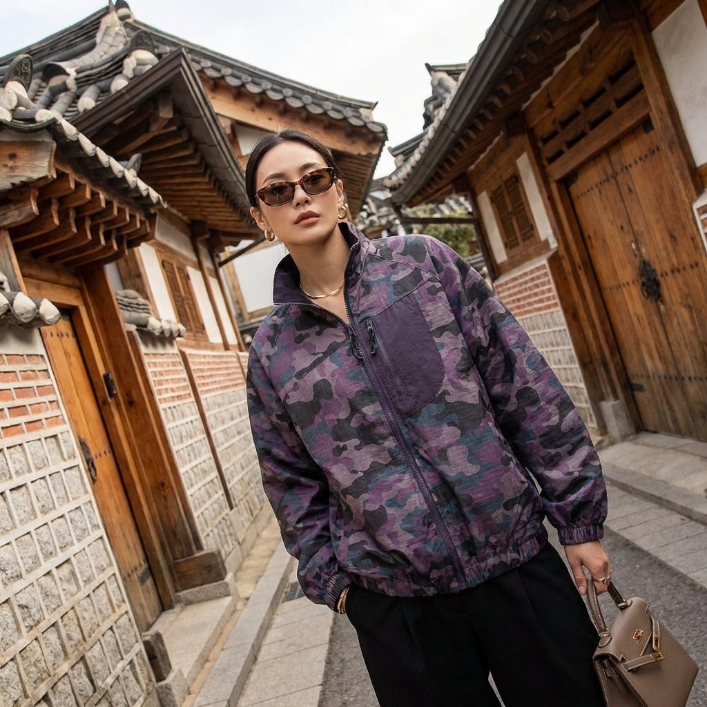 - Estilo: Streetwear, Tendencia, K-fashion. Esta chaqueta encarna el dinamismo de la moda urbana coreana, con un toque militar revisitado.