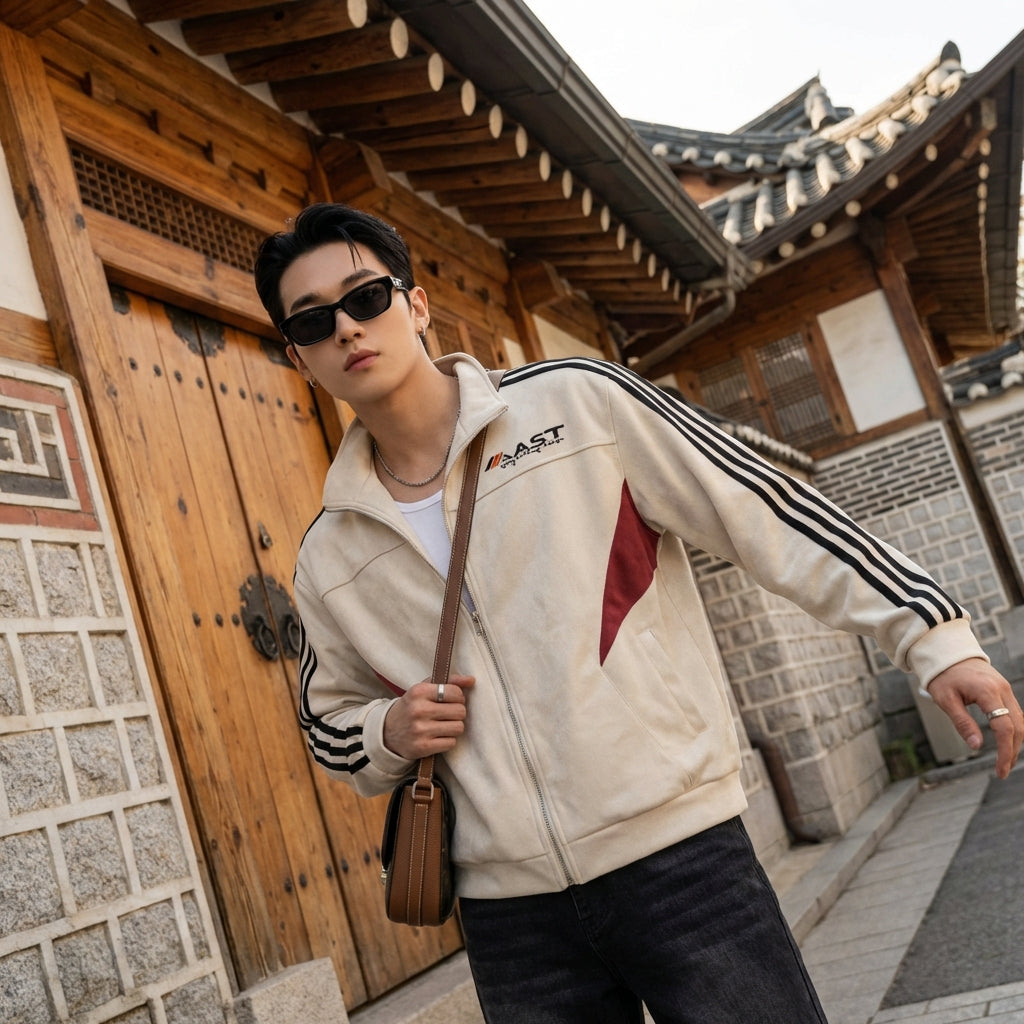 Esta chaqueta es la elección perfecta para aquellos que buscan añadir un toque de dinamismo y originalidad a su armario, manteniéndose a la vanguardia de la moda coreana.