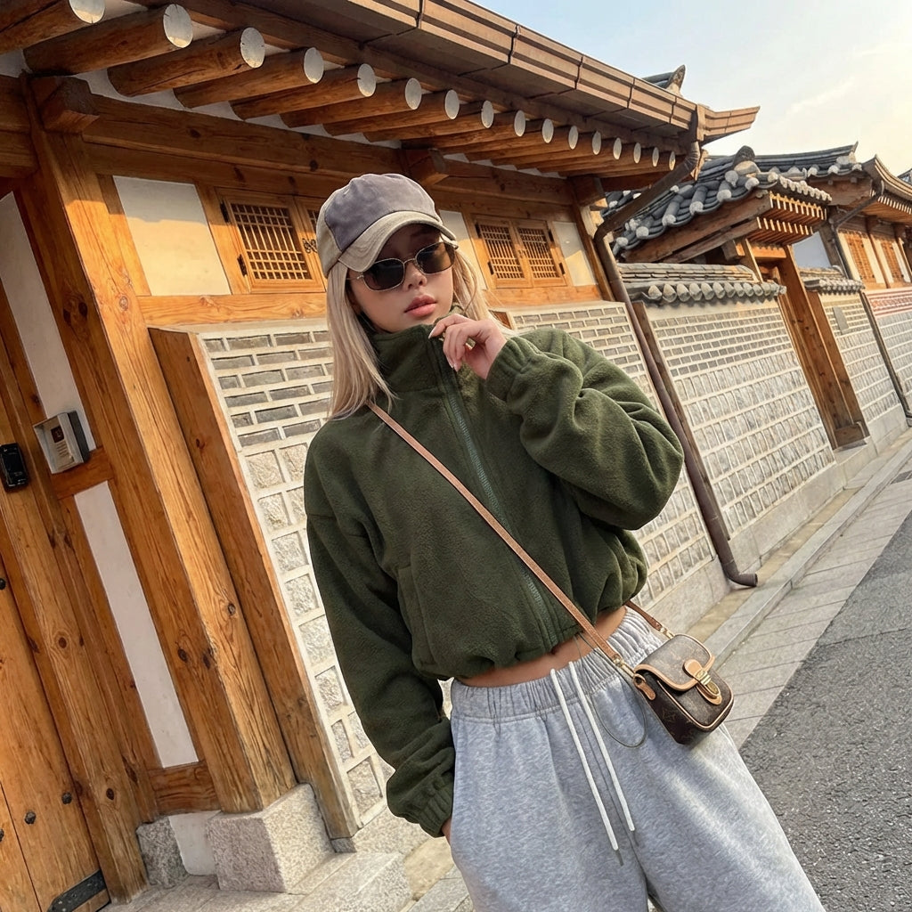 - Estilo: Streetwear, K-fashion, Tendencia. Esta chaqueta encarna el espíritu urbano y moderno de la moda coreana, con un toque casual.