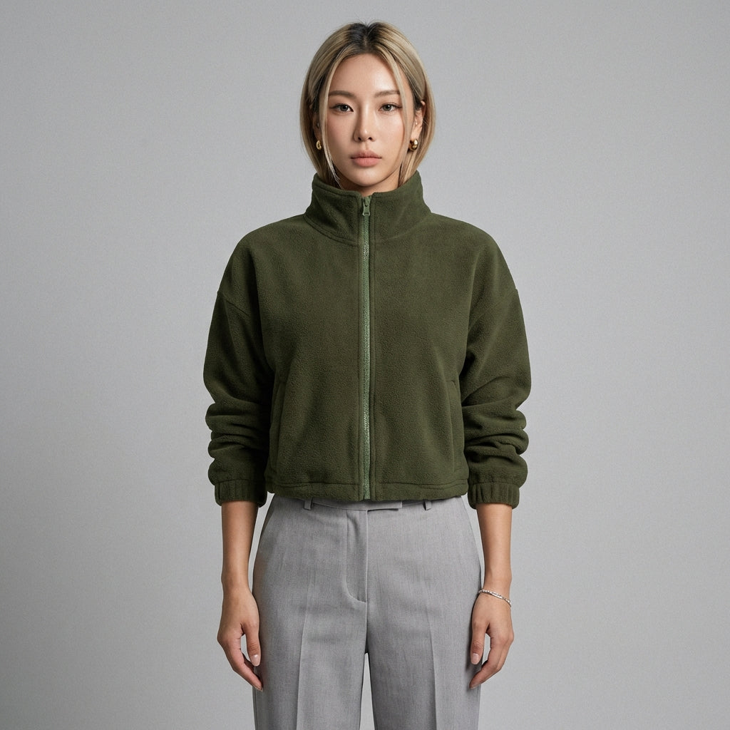 - Tipo: Cropped, Cuello alto. Un corte corto que realza la silueta y un cuello alto para una protección elegante.