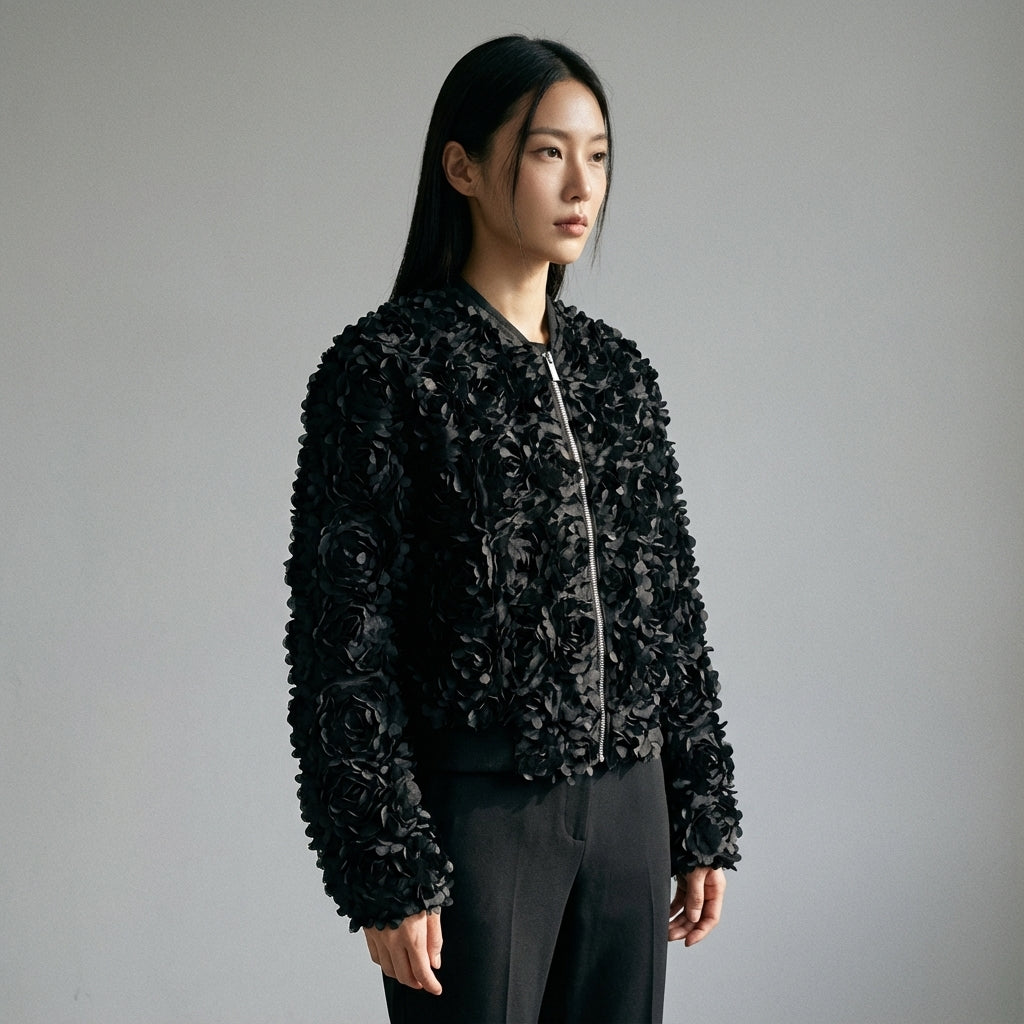 Descubre nuestra Chaqueta Floral Negra Coreana, una prenda imprescindible para un look urbano y elegante. Su tejido texturizado con delicados motivos florales aporta un toque de sofisticación a esta chaqueta ligera y cómoda, perfecta para todas las ocasiones. ✨