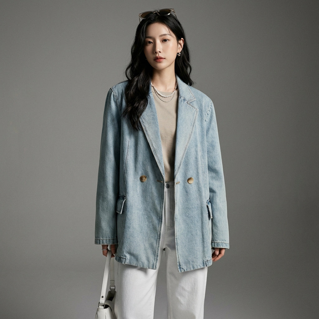 Adopta un look moderno y casual con nuestra chaqueta vaquera oversize, perfecta para todas las estaciones. Su diseño moderno con mangas largas y doble botonadura aporta un toque de estilo único a tu armario. ✨