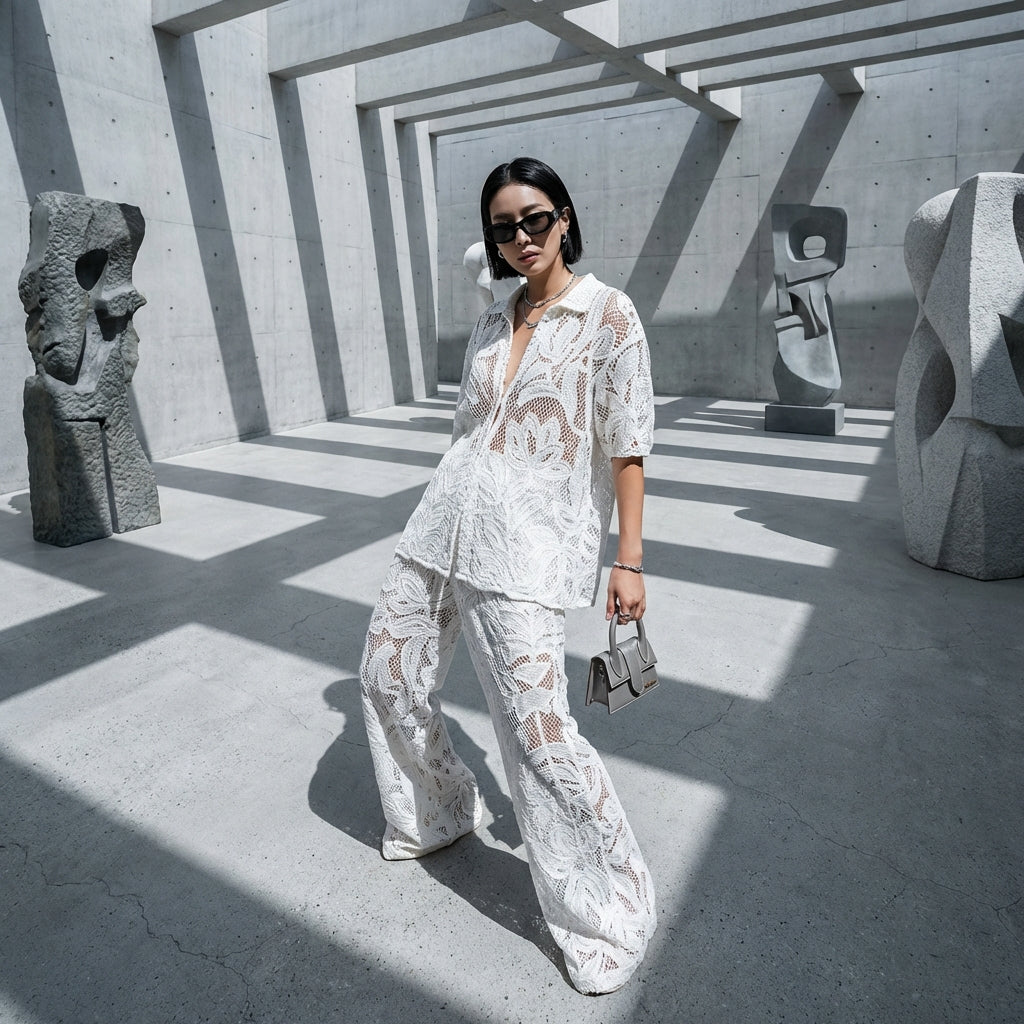Adopta un look casual y chic con este conjunto que incluye un top calado y un pantalón de pernera recta. ¡Perfecto para una silueta moderna y cómoda para el día a día! ✨
