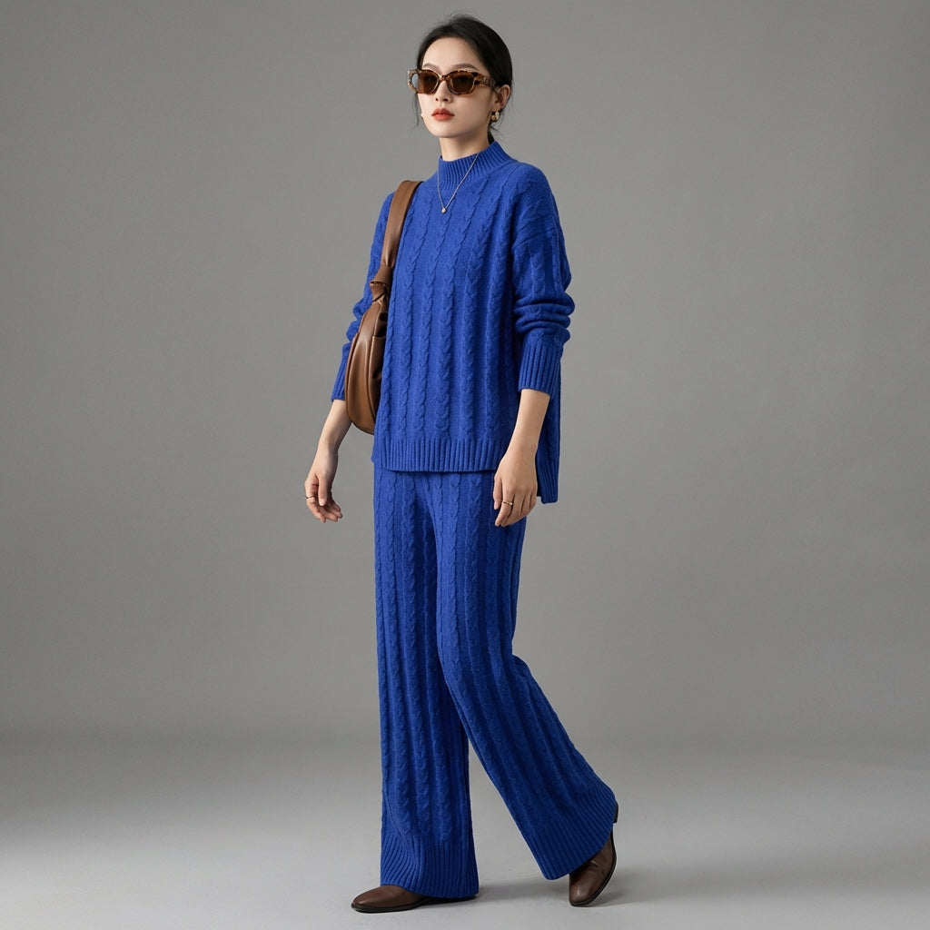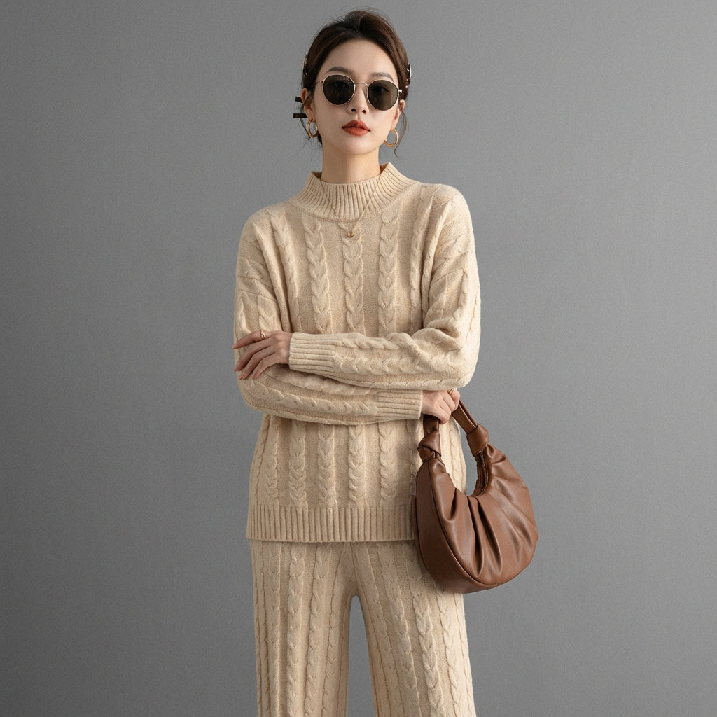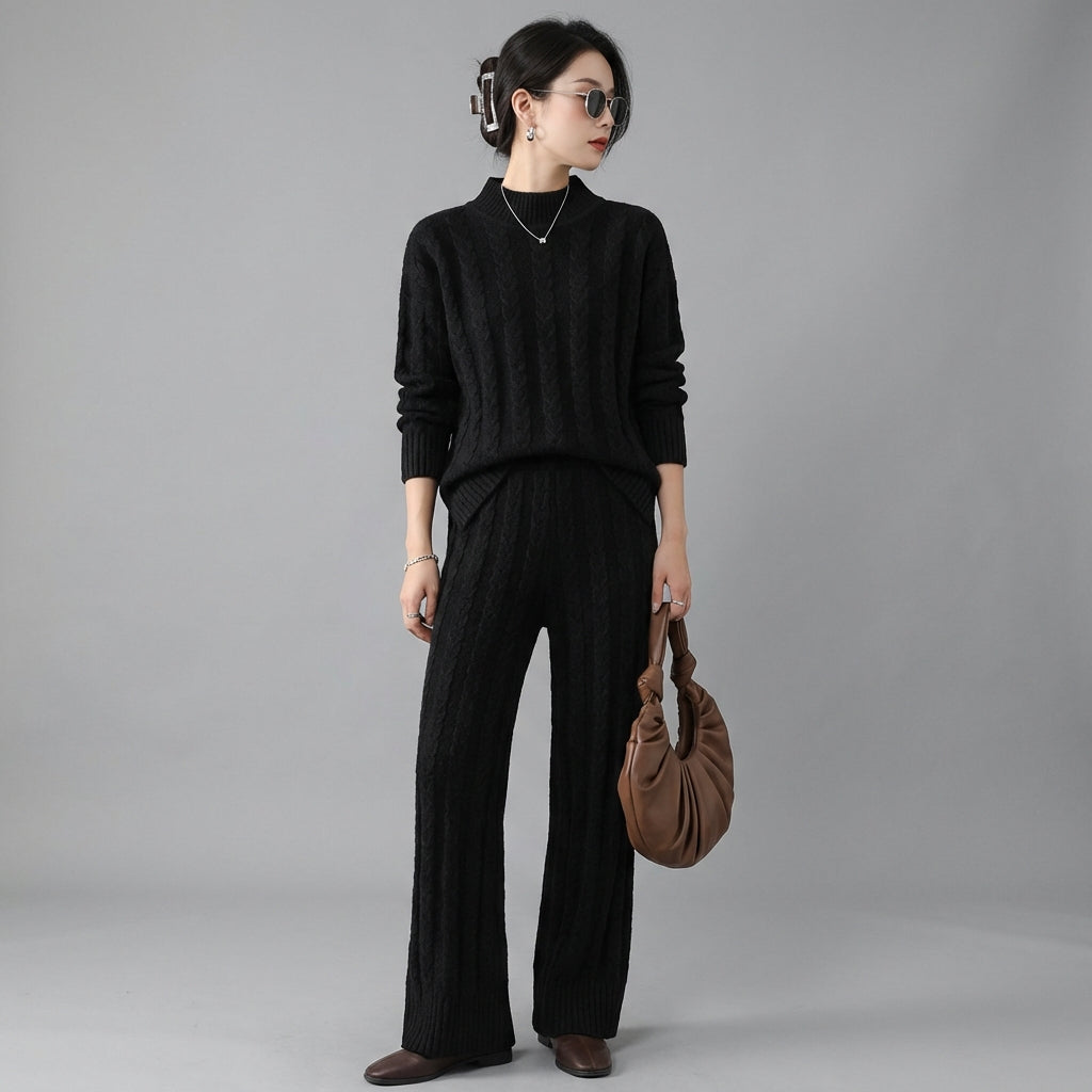 Descubre nuestro conjunto de dos piezas ultra-moderno, compuesto por un jersey de cuello semi-alto y un pantalón de talle alto con pernera ancha. ¡Este conjunto es perfecto para un look casual chic o un atuendo de oficina moderno, combinando comodidad y elegancia! ✨
