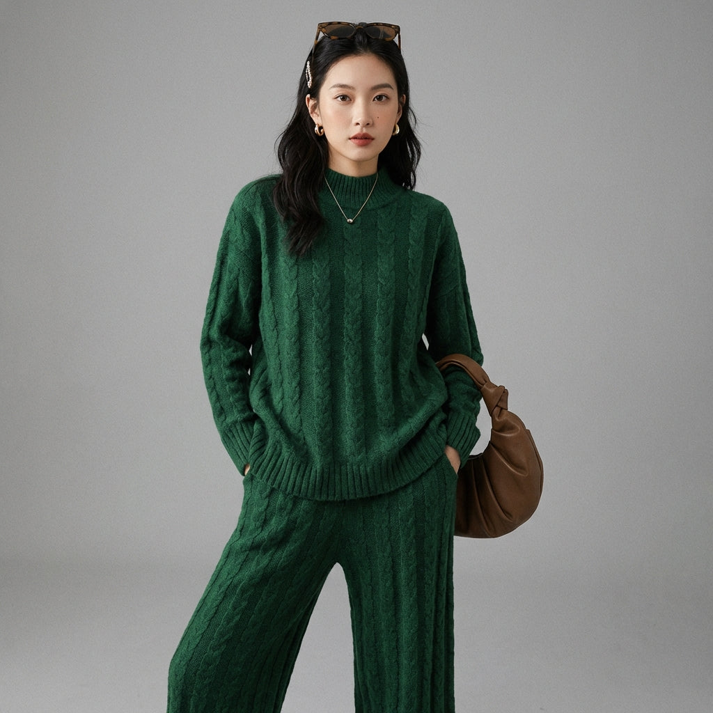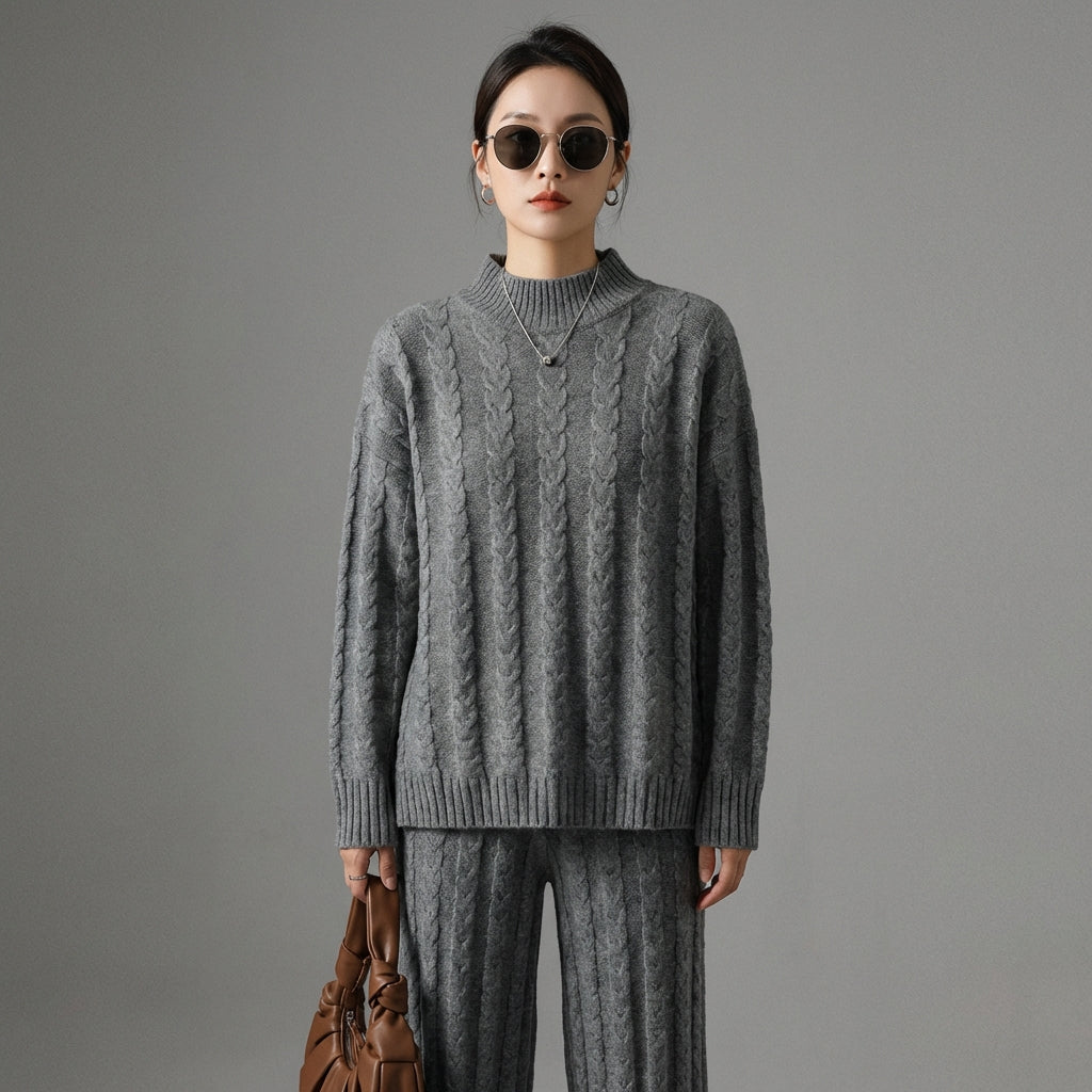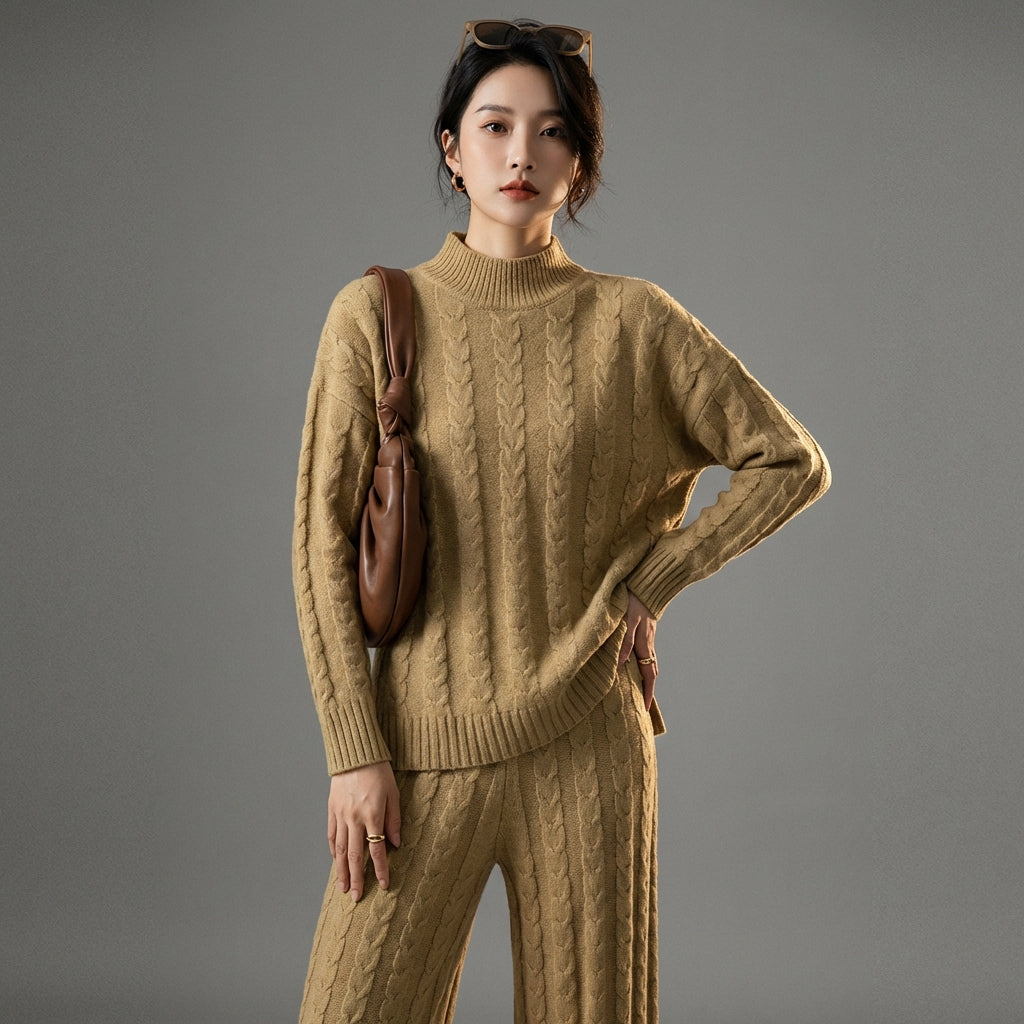 Descubre nuestro conjunto de dos piezas ultra-moderno, compuesto por un jersey de cuello semi-alto y un pantalón de talle alto con pernera ancha. ¡Este conjunto es perfecto para un look casual chic o un atuendo de oficina moderno, combinando comodidad y elegancia! ✨