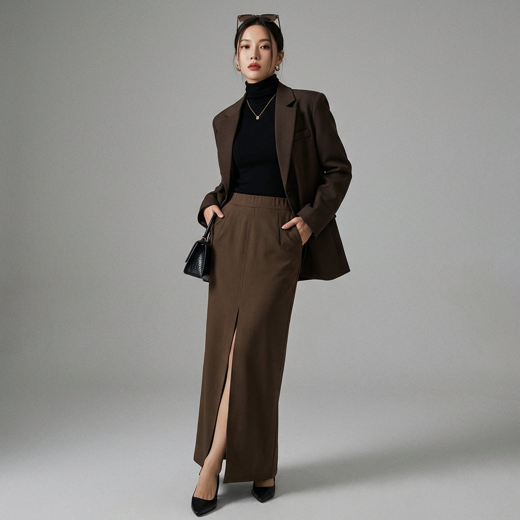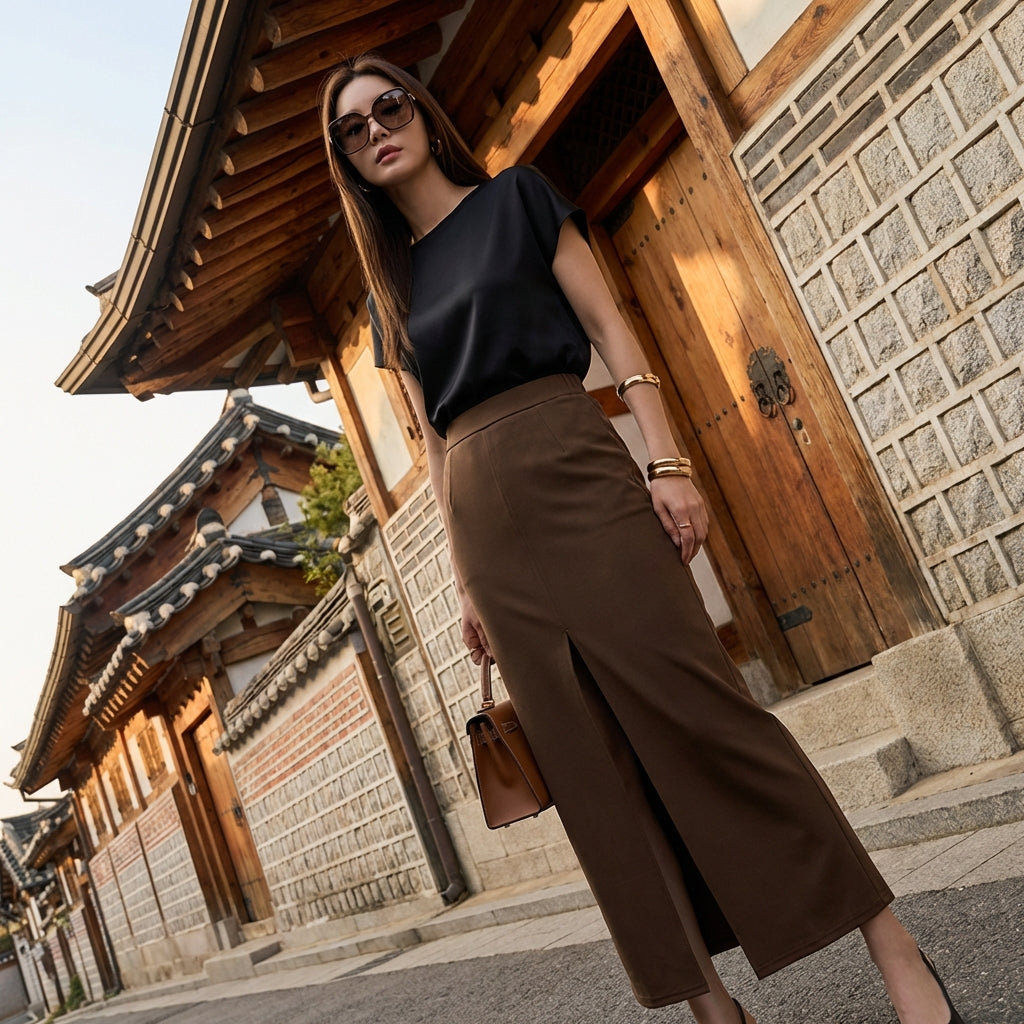 - Estilo: Moda coreana, Elegante, Minimalista. Esta falda encarna la elegancia discreta y las líneas limpias de la moda coreana, perfecta para un look cuidado y a la moda.