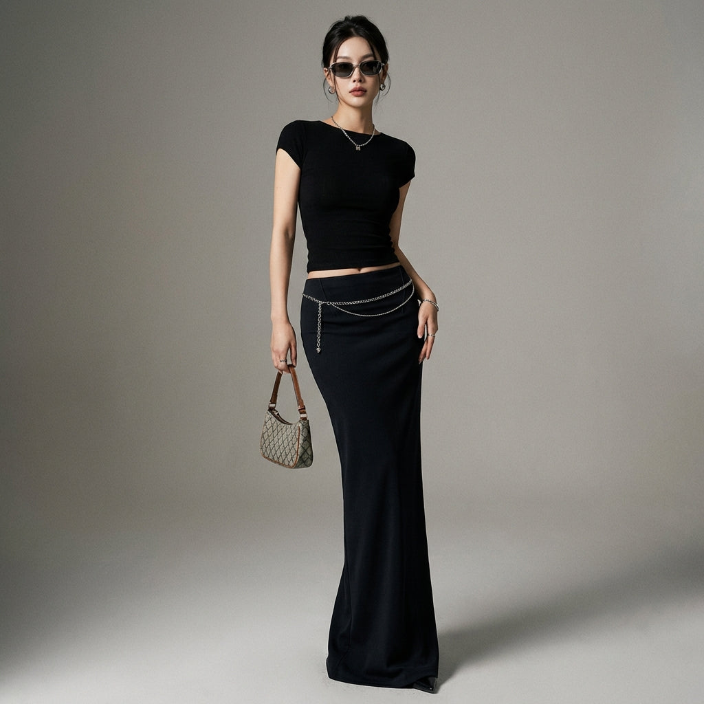 Afirma tu estilo con nuestra falda larga con abertura, una pieza atemporal para un look elegante y moderno. Su corte ajustado realza la silueta con refinamiento, mientras que la abertura aporta un toque de sofisticación discreta. ¡Perfecta para todas las ocasiones, combina fácilmente con tus tops favoritos! ✨