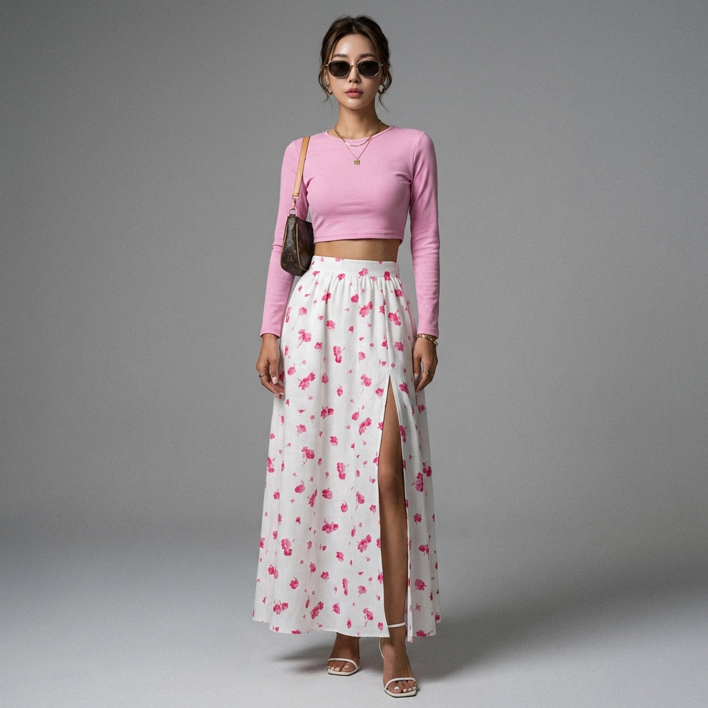 Afirma tu estilo con nuestra falda larga de talle alto, con una elegante abertura para un toque de sofisticación. ¡Perfecta para un look chic y casual, se adapta a todas las ocasiones! 🌸