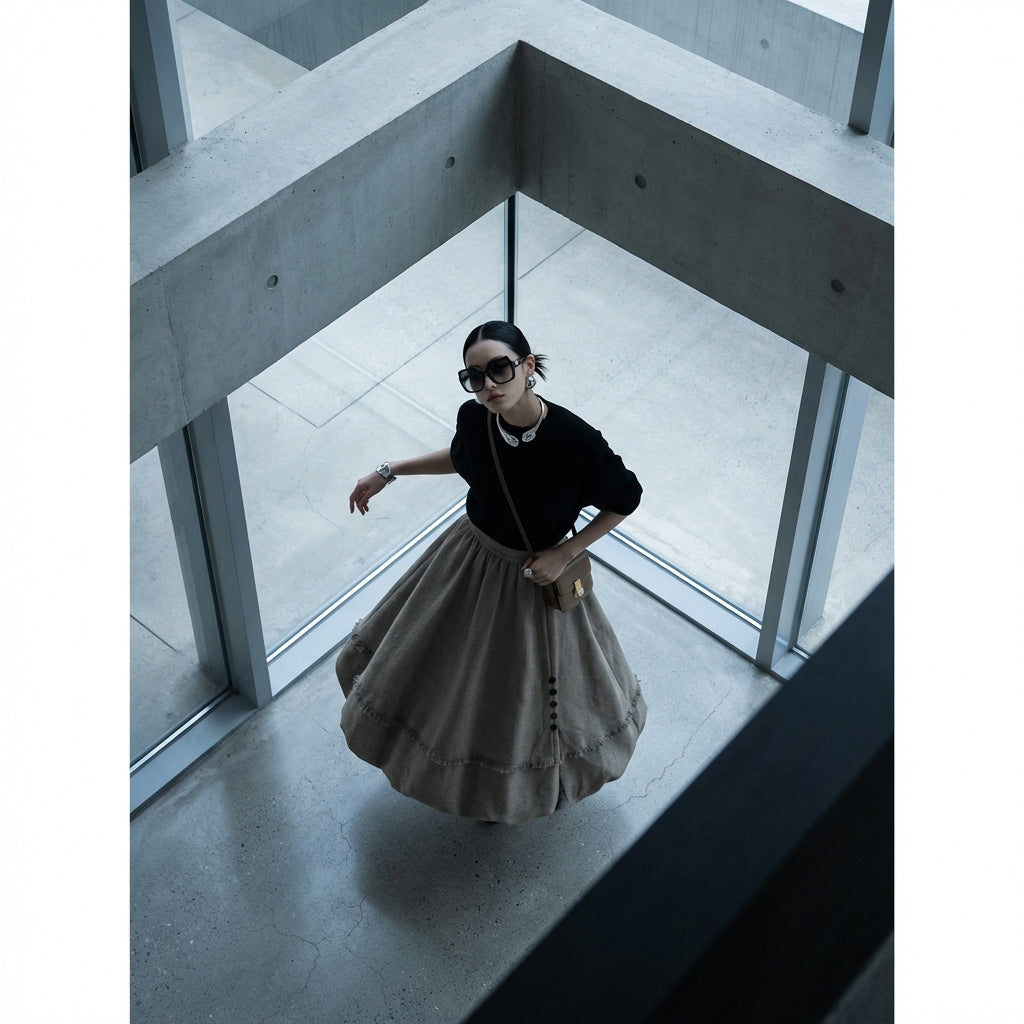 - Estilo: Minimalista, Chic, K-fashion. Esta falda encarna la elegancia discreta y moderna de la moda coreana, ideal para un look sofisticado.