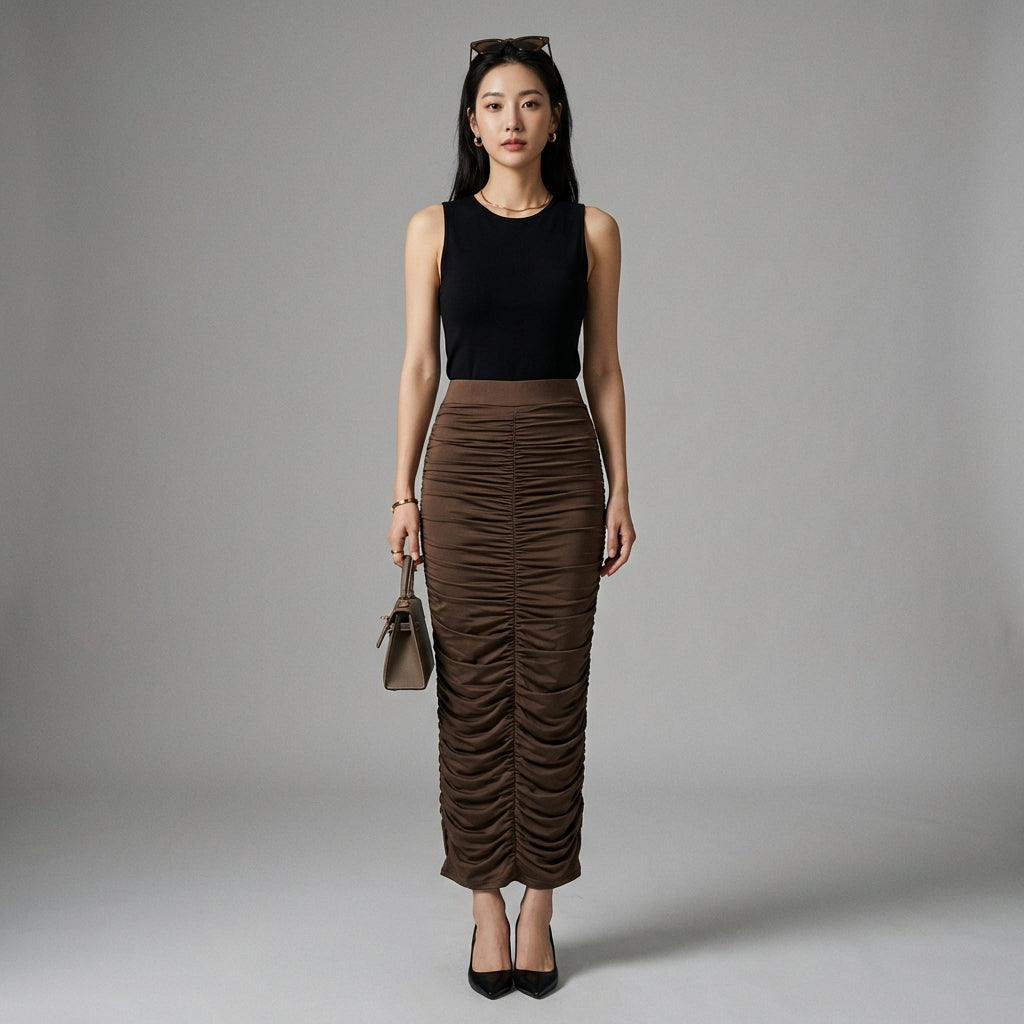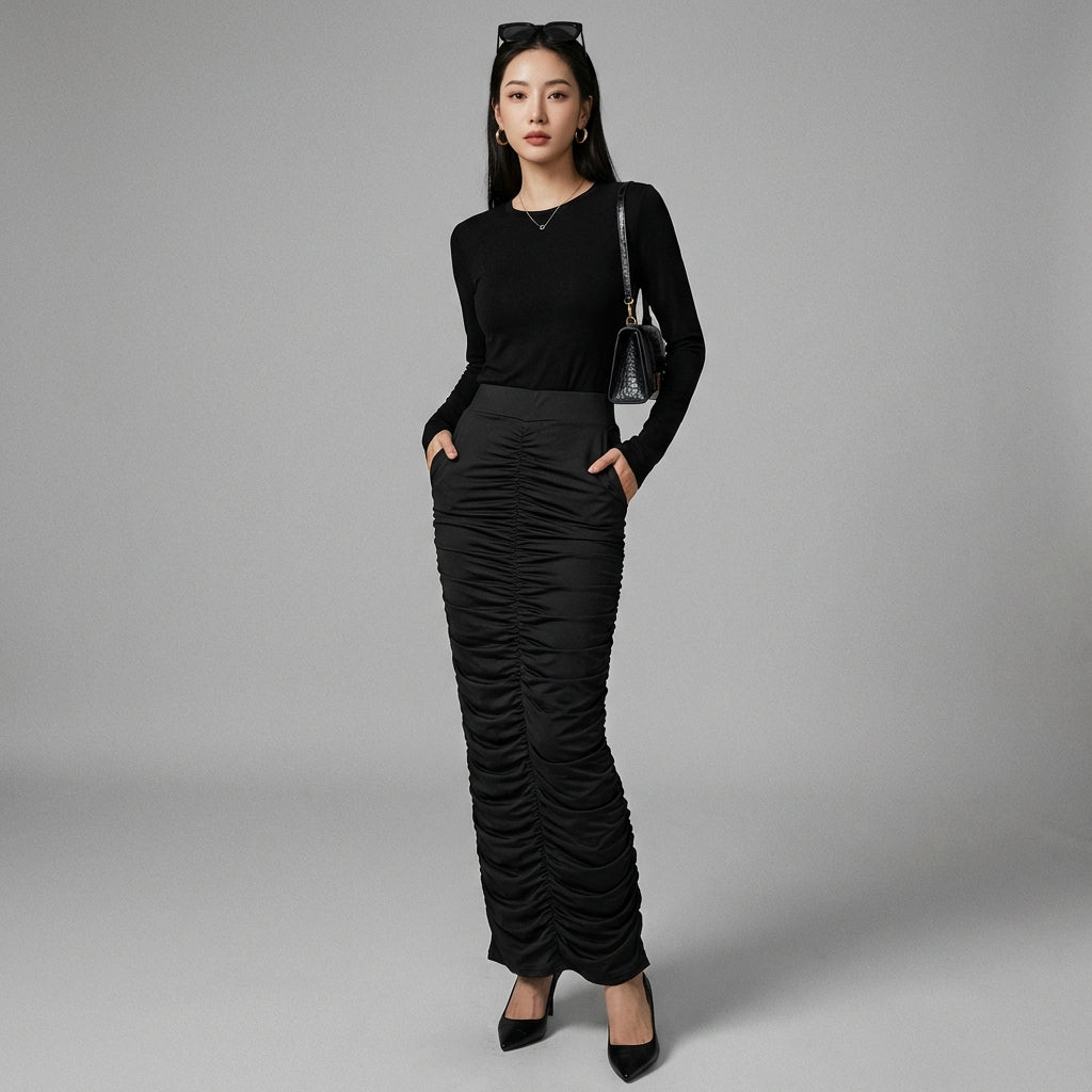 Adopta un estilo sofisticado y moderno con nuestra falda larga plisada de talle alto. ¡Su diseño elegante y su corte favorecedor la convierten en un imprescindible para un look chic y moderno! ✨