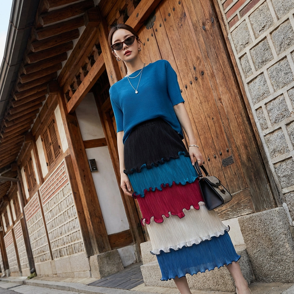 - Estilo: Moda coreana, Elegante, Urbano. Esta falda encarna la elegancia discreta y moderna de la K-fashion, ideal para un look sofisticado y a la moda.