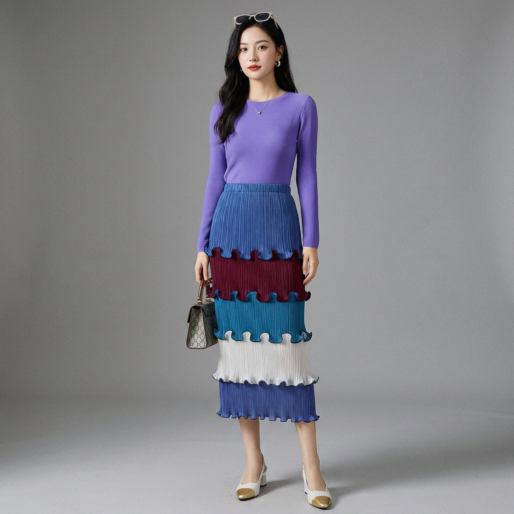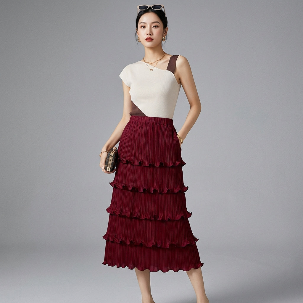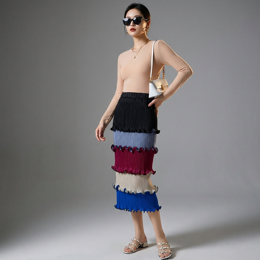 Descubre nuestra falda plisada de talle alto, una pieza clave para un estilo elegante y refinado. Su corte midi y su diseño sofisticado realzan la silueta, mientras que los detalles de volantes aportan un toque de feminidad. ¡Perfecta para la oficina o una salida chic! ✨