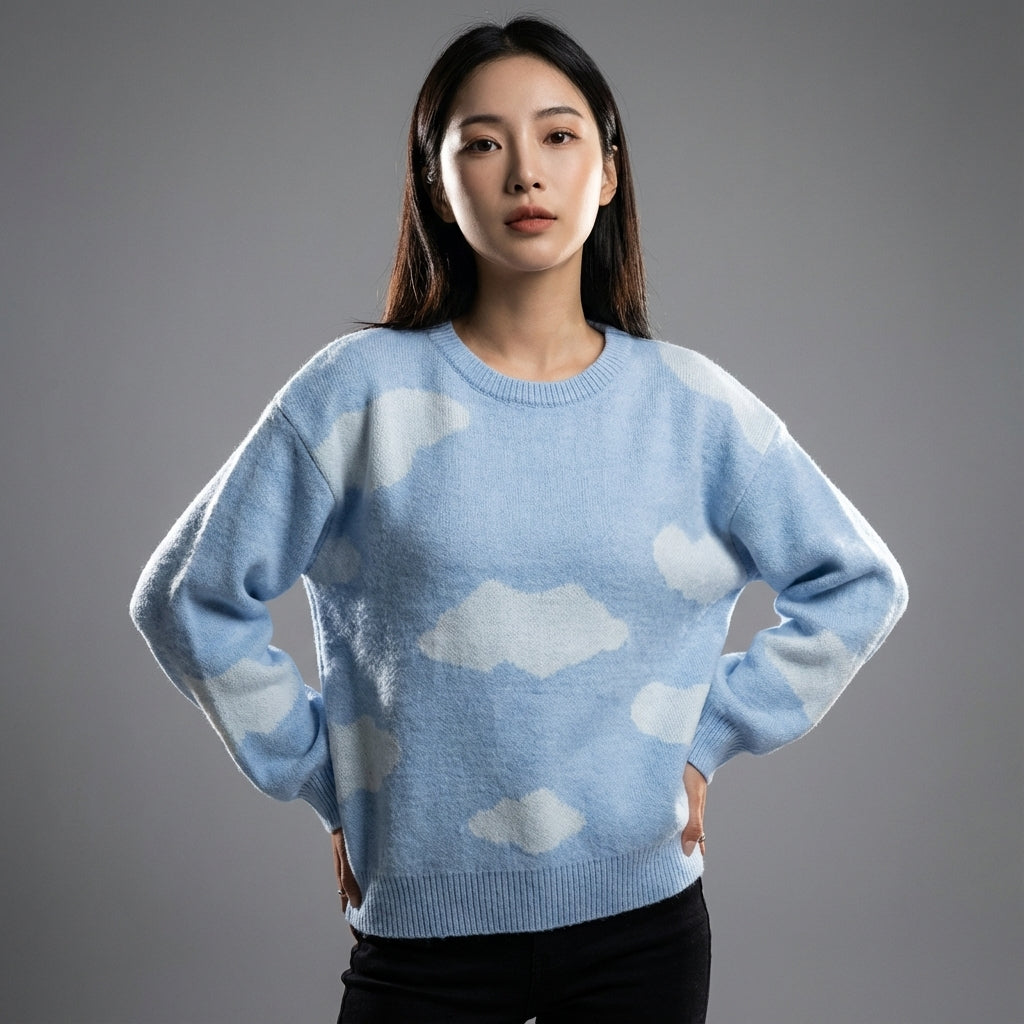 - Estilo: Moda coreana, Streetwear, Casual. Este suéter encarna la estética casual y de moda coreana, perfecto para un look moderno y urbano.