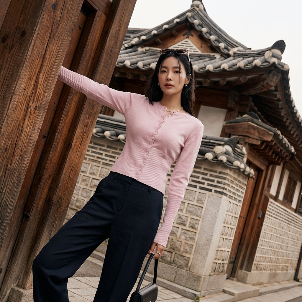 - Estilo: Suave, Minimalista, K-fashion. Este suéter encarna la elegancia discreta y moderna, inspirada en las tendencias coreanas.