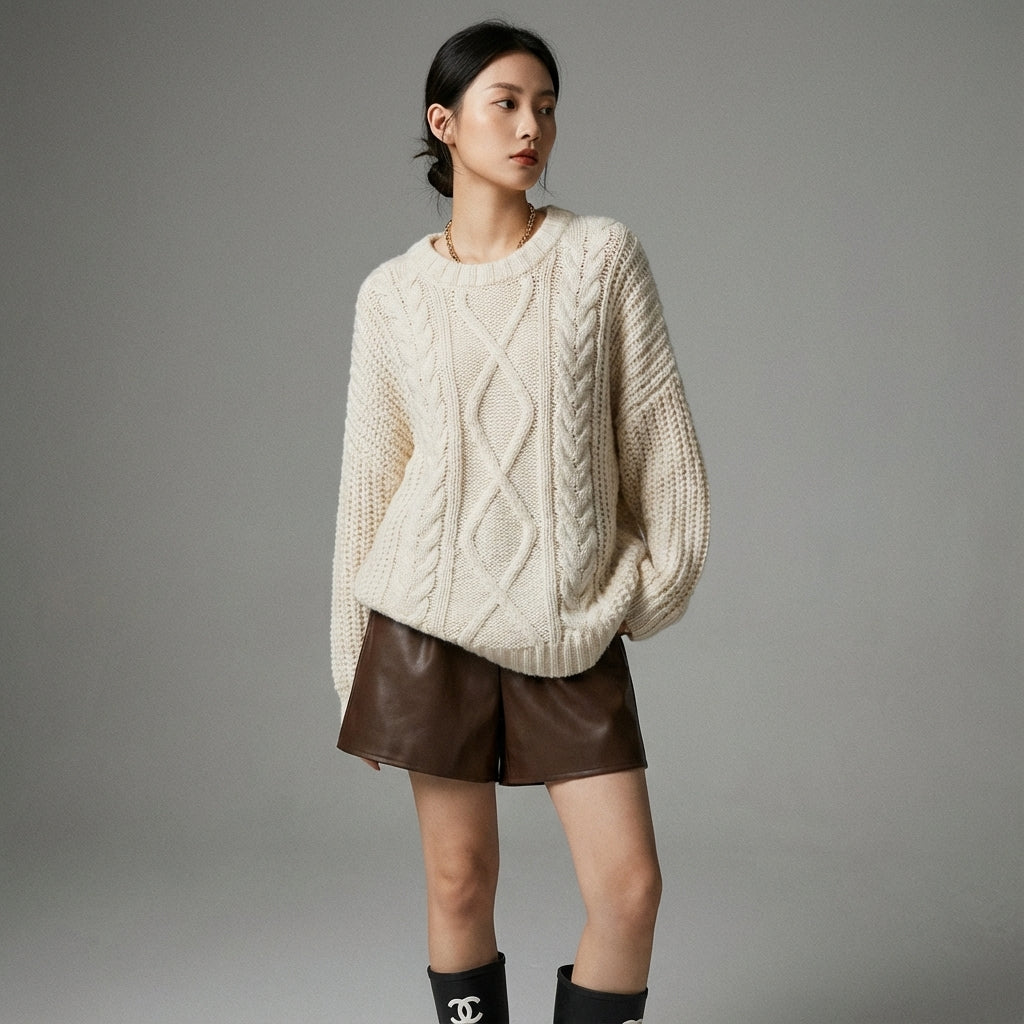 Descubre nuestro suéter de mujer tejido trenzado, un imprescindible de la moda coreana. Con su cuello redondo y corte holgado, combina comodidad y elegancia casual para todas las ocasiones. ¡Disponible en varios colores, es la prenda perfecta para un look moderno y acogedor! ✨