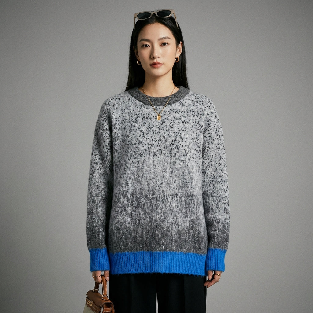Adopta un look casual y moderno con nuestro jersey oversize de cuello redondo y manga larga. Su exclusivo motivo degradado aporta un toque de originalidad, ¡perfecto para un estilo urbano y moderno! ✨