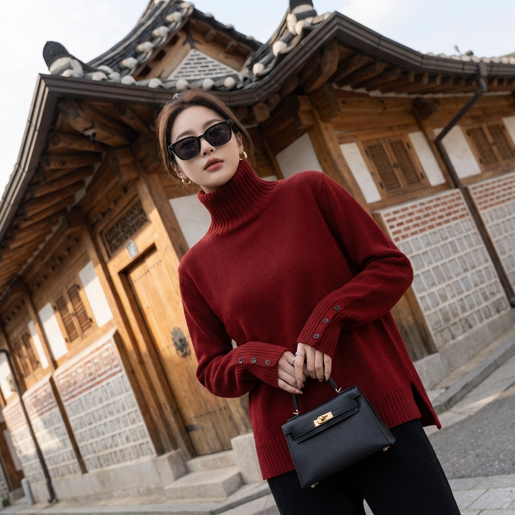 - Estilo: K-fashion, Tendencia, Urbano. Este jersey encarna la elegancia informal de la moda coreana, ideal para un estilo urbano y moderno.