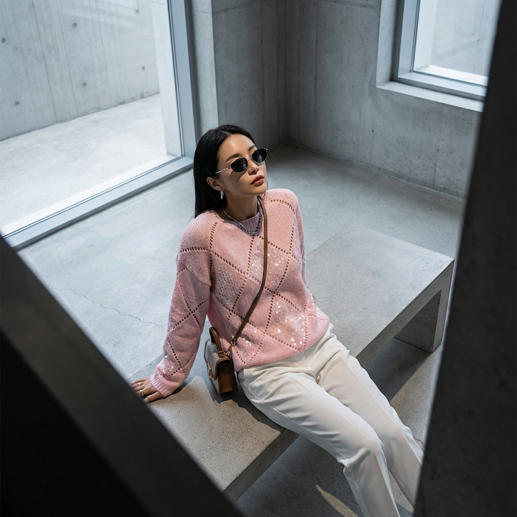 - Estilo: K-fashion, Tendencia, Chic casual, Noche. Este suéter encarna la elegancia moderna de la moda coreana con un toque glamuroso, ideal para un look sofisticado o una salida.