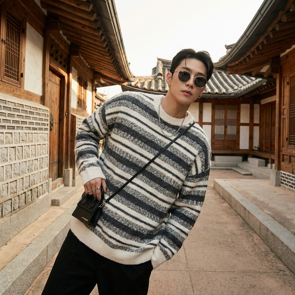 - Estilo: Streetwear, K-fashion, Casual. Este suéter encarna el espíritu joven y moderno de la moda coreana, perfecto para un look urbano.