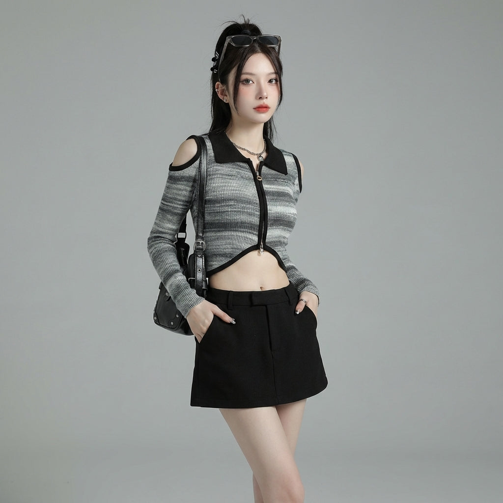 Adopta un look fresco y moderno con nuestra minifalda trapecio. Diseñada para realzar la figura, esta falda versátil es un básico imprescindible para un estilo casual o más formal. ¡Su diseño depurado y su corte elegante la convierten en una prenda fácil de combinar para cualquier ocasión! ✨