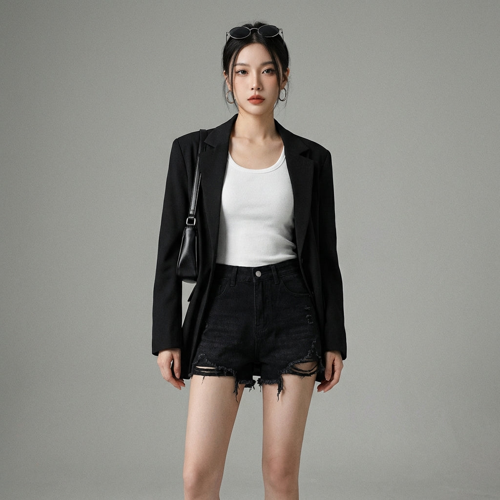Ce pantacourt en jean est un incontournable pour toute garde-robe moderne, offrant un mélange parfait de confort et de style coréen.