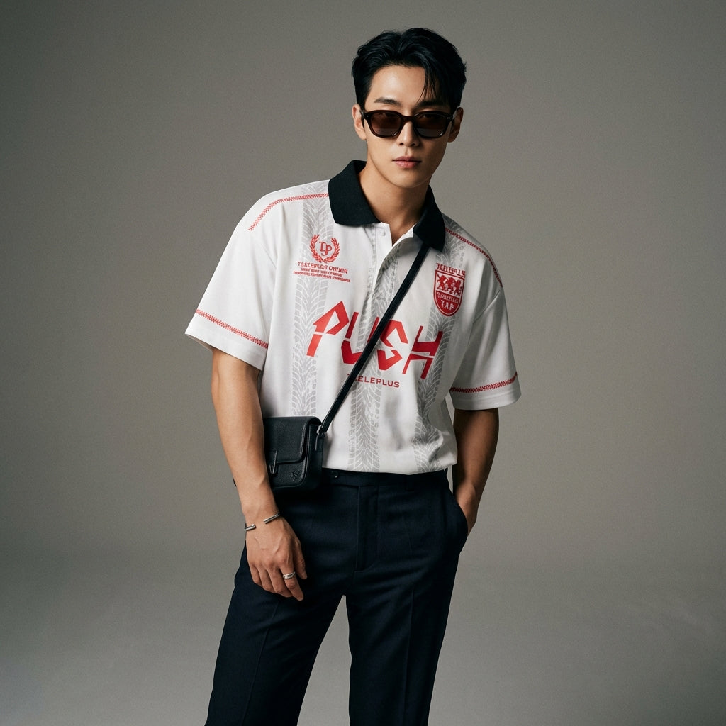 - Estilo: Retro Japonés, Streetwear, K-fashion. Este polo encarna una estética casual con una inspiración retro y moderna, muy popular en la moda coreana.