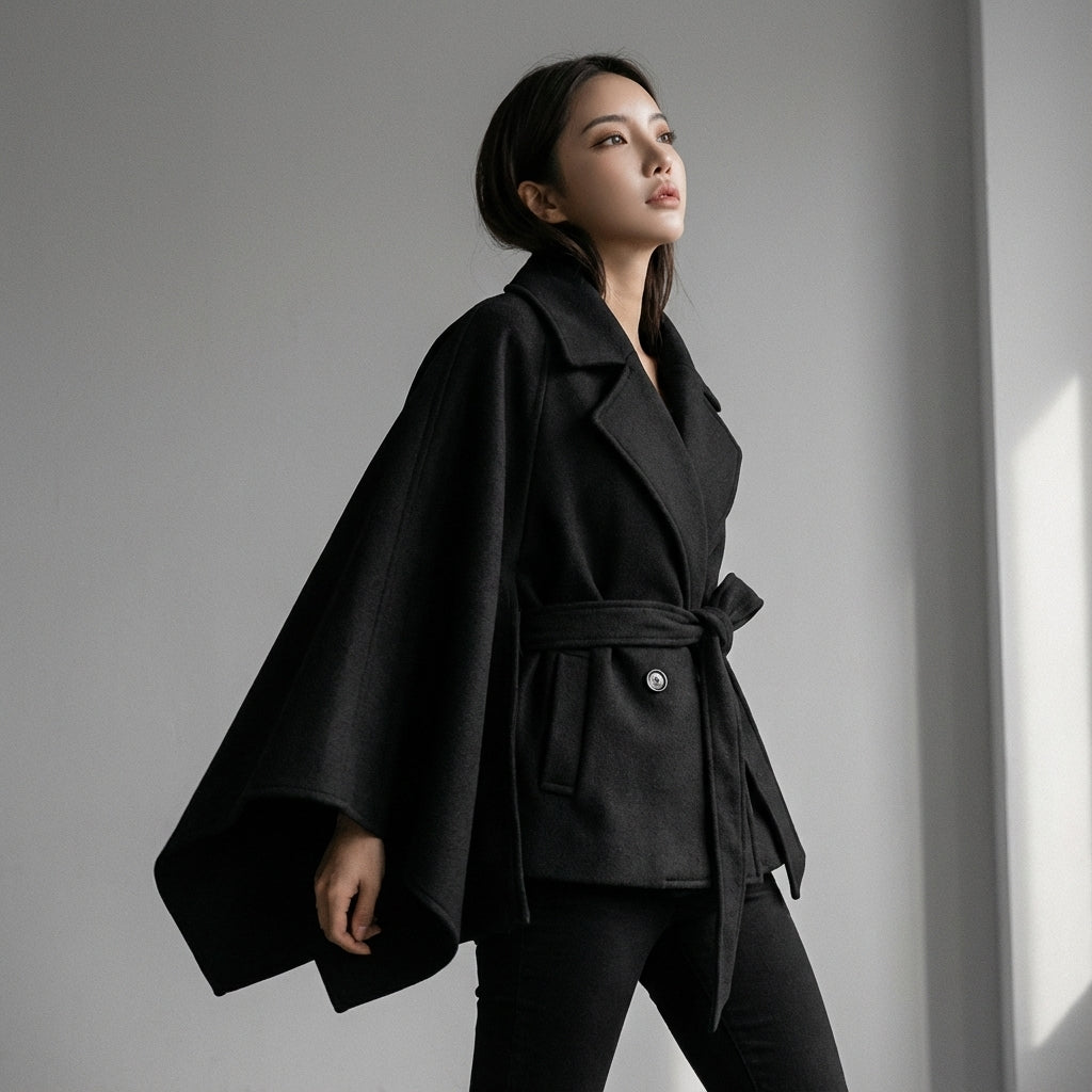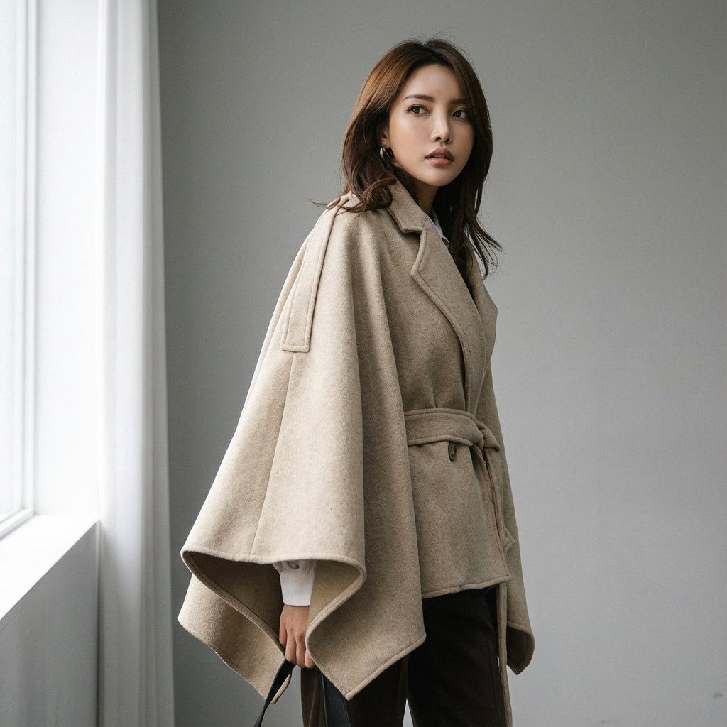 Al elegir este poncho capa, optas por una prenda que no solo te ofrecerá una elegancia y un confort excepcionales, sino que también enriquecerá tu guardarropa con un toque de moda coreana refinada.