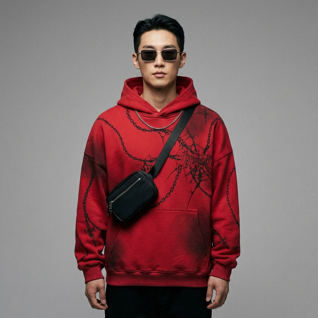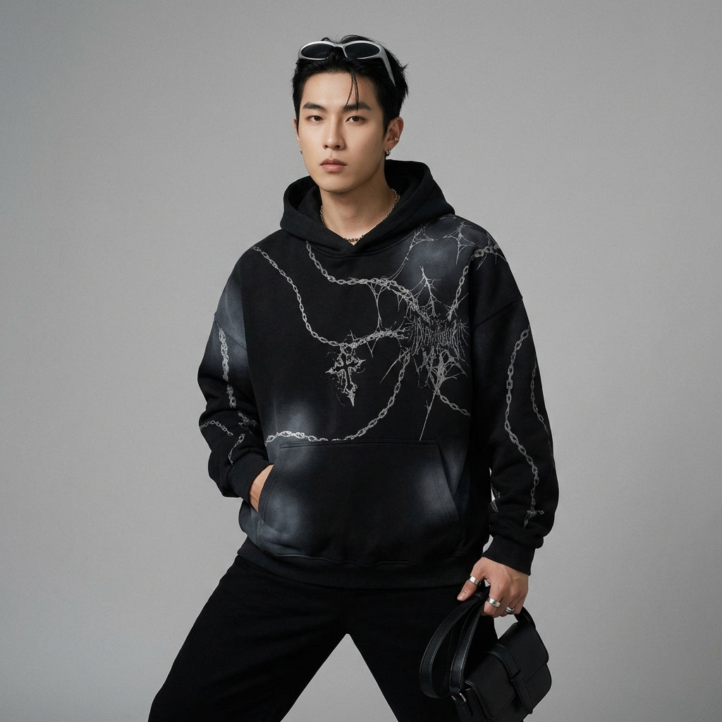 Afirma tu estilo con nuestra sudadera con capucha unisex, un imprescindible del streetwear coreano. Su diseño "distressed" y su corte relajado la convierten en la prenda perfecta para un look moderno y atrevido. ¡Ideal para quienes se atreven a destacar! 💥