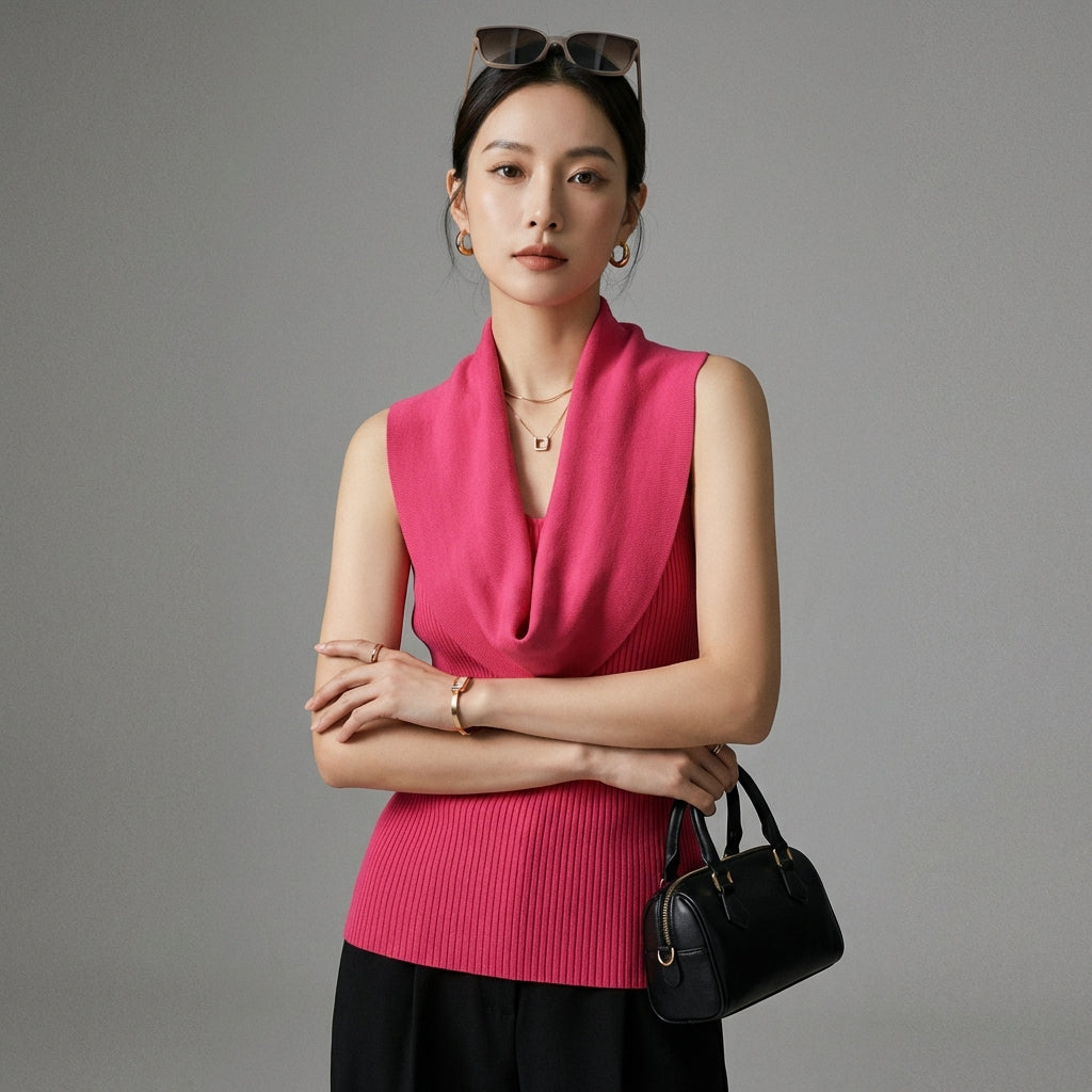 Adopta un look chic y casual con nuestro top de punto de cuello básico, una pieza esencial para tu guardarropa. Su diseño depurado y su corte slim realzan tu figura con elegancia, ¡perfecto para cualquier ocasión! ✨