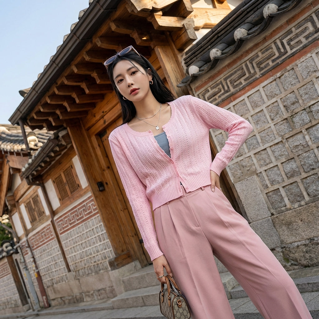 - Estilo: Moda Coreana, Chic, Urbano. Este top encarna la elegancia discreta de la K-fashion, ideal para un estilo diario o para salir.