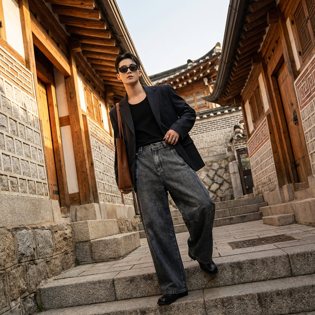 - Estilo: Streetwear, K-fashion, Retro, Casual. Estos jeans se inspiran en las tendencias actuales de la moda coreana, con un toque retro japonés para un estilo definido.