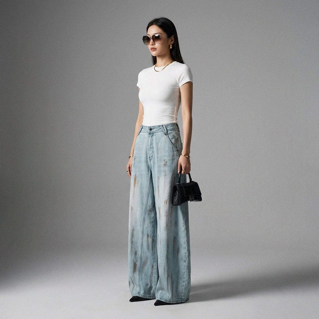 - Estilo: Streetwear, Tendencia, K-fashion. Estos vaqueros encarnan el espíritu relajado y moderno del streetwear, inspirados en las últimas tendencias coreanas.