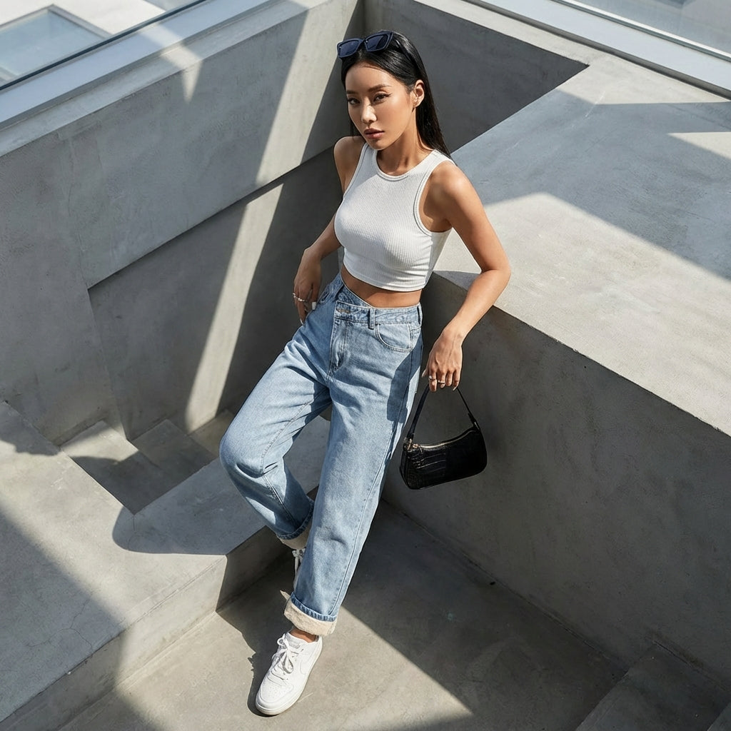 - Estilo: Streetwear, Casual, K-fashion. Estos vaqueros encarnan el estilo urbano coreano, ideales para un look moderno y fácil de llevar.