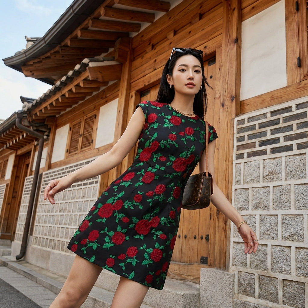 Este vestido estampado es un imprescindible para aquellas que buscan una prenda versátil, capaz de adaptarse a diversas ocasiones, desde el día a día hasta salidas informales, con un toque de sofisticación coreana.