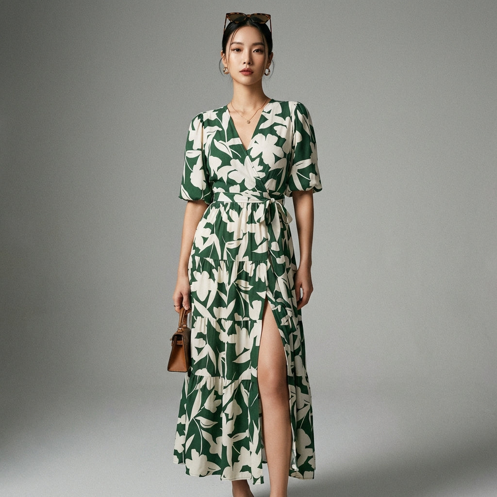 Adopta la elegancia primaveral con nuestro vestido midi floral, con un favorecedor cuello en V y mangas cortas. Su cintura alta y su delicada abertura crean una silueta grácil y femenina, ¡perfecta para cualquier ocasión informal! 🌸