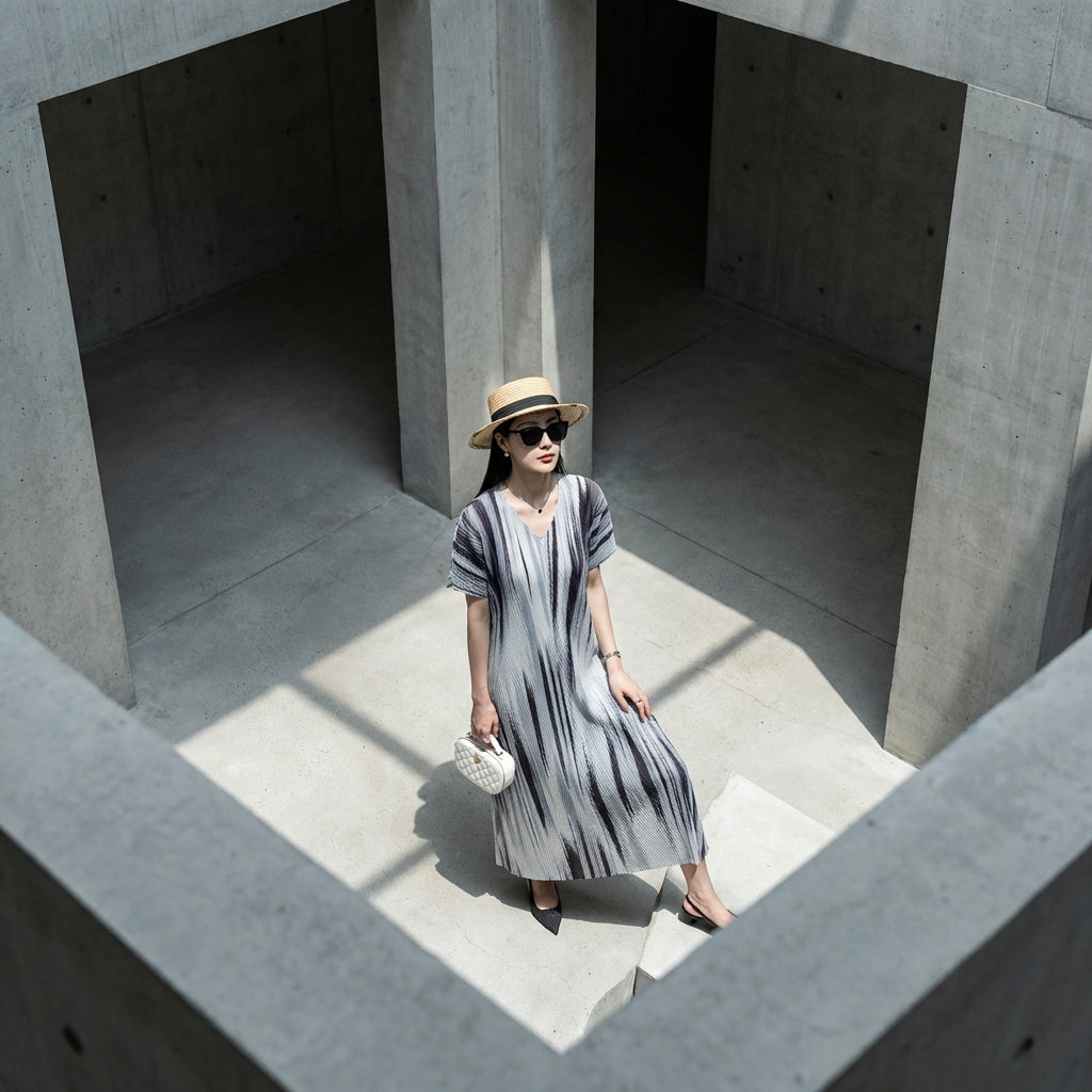 Adopta un estilo elegante y cómodo con nuestro vestido plisado con cuello en V. Su corte acampanado y sus sutiles detalles lo convierten en una opción ideal para cualquier ocasión, ¡combinando feminidad y desenfado! ✨