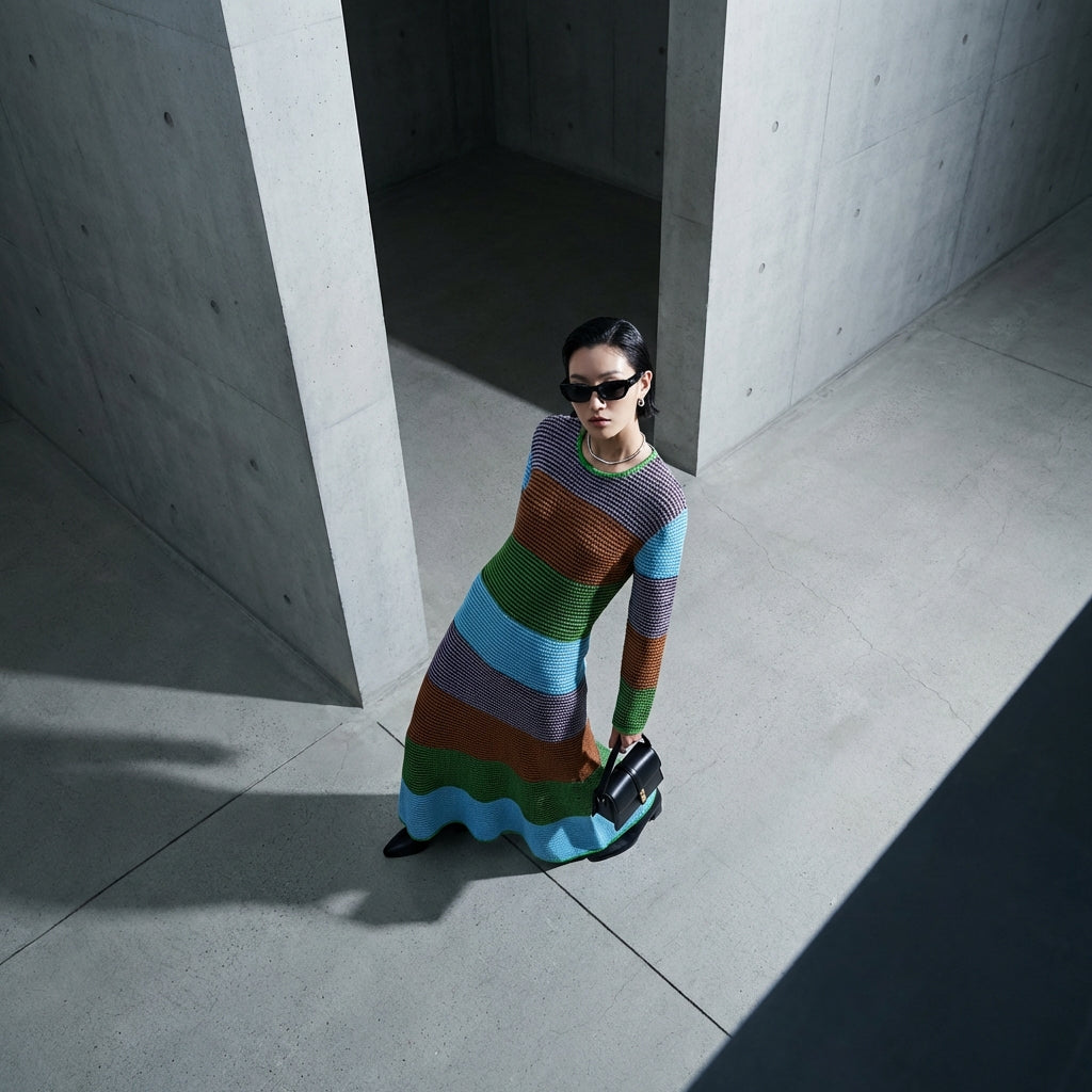 Este vestido de punto bicolor es un imprescindible para aquellas que buscan una prenda versátil, capaz de adaptarse tanto a un estilo streetwear como a un atuendo más sofisticado, todo ello reflejando las últimas tendencias K-fashion.