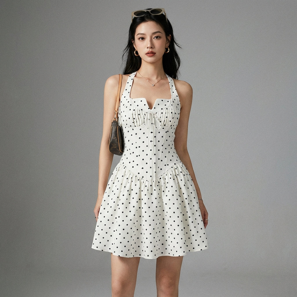 - Estilo: Streetwear, Tendencia, K-fashion. Este vestido encarna el espíritu urbano y moderno de la moda coreana, con un toque de fantasía gracias a sus lunares.